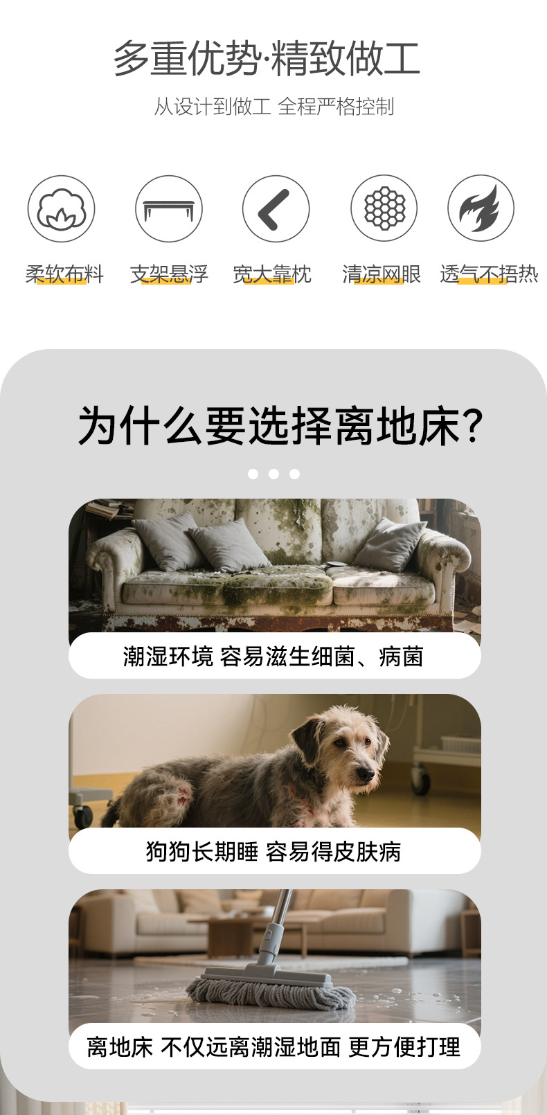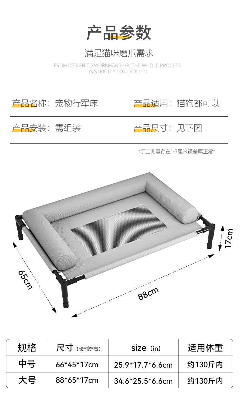 狗窝可拆洗离地狗床小中大型犬猫网布夏季防潮狗狗行军床透气
