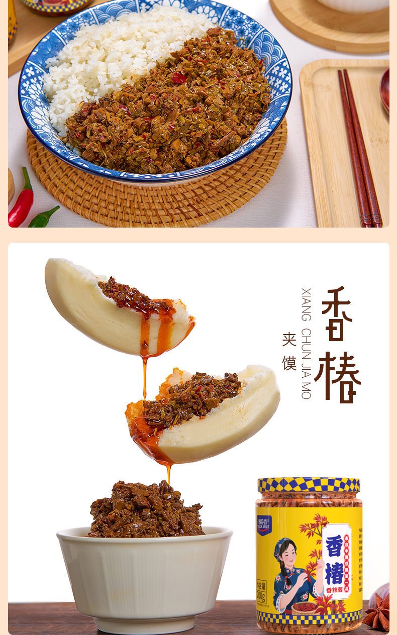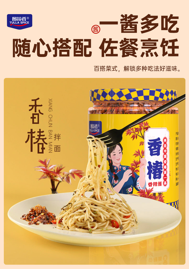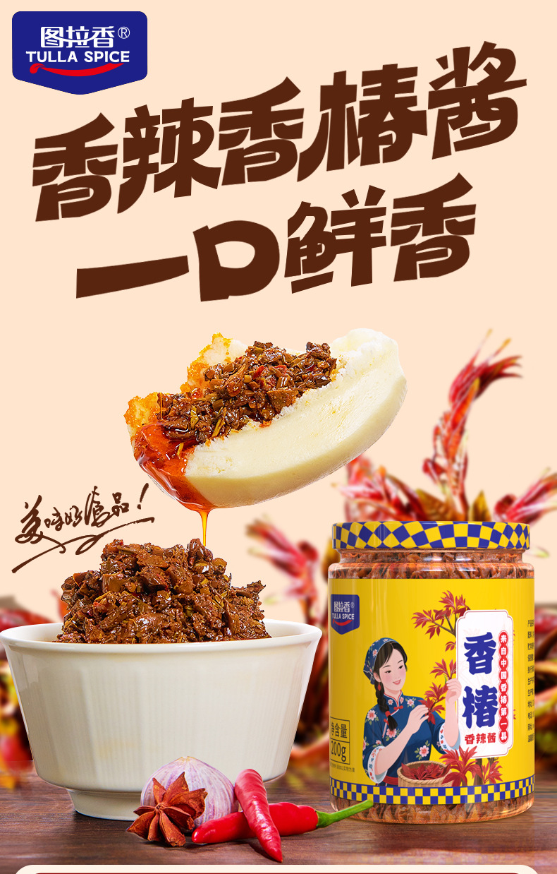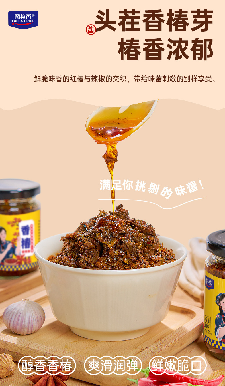 图拉香厂家直销香辣嫩芽香椿酱开胃下饭酱瓶装拌饭拌面香辣酱新鲜