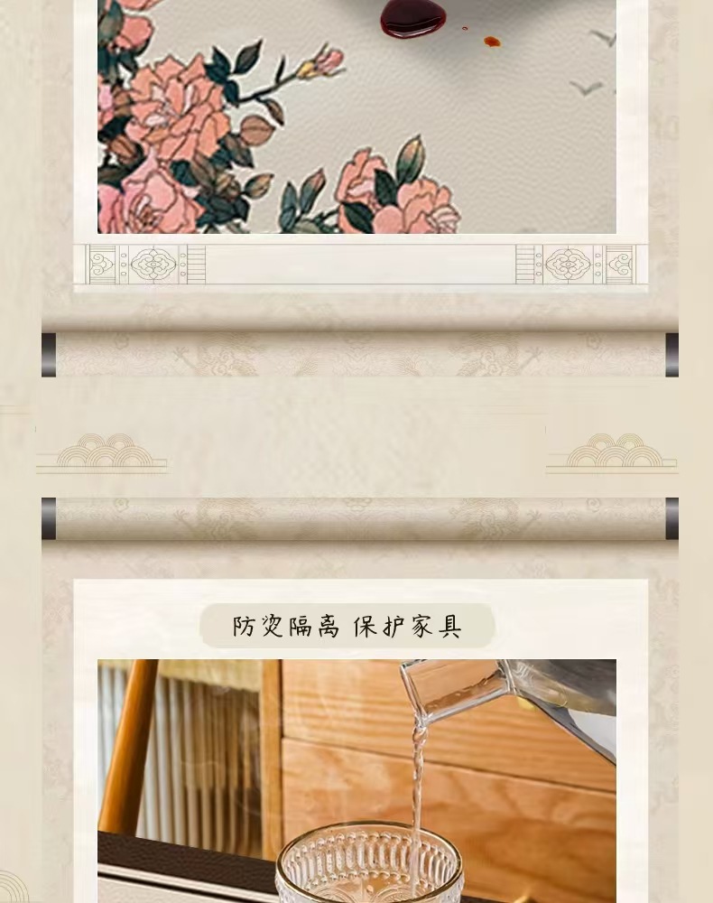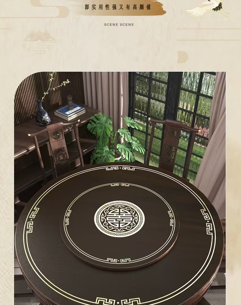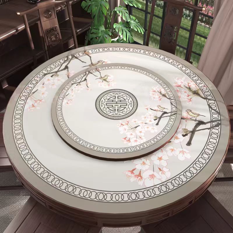 新中式茶几大圆桌桌布圆形双层餐桌带转盘桌垫防水防油免洗皮革垫