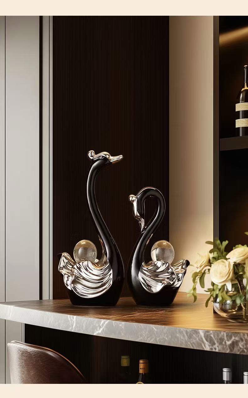 カップルの白鳥の家の客間の酒の棚の装飾品は中国式の軽い贅沢な創業の事務室の樹脂の工芸品を並べます。