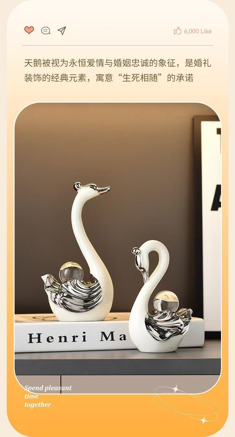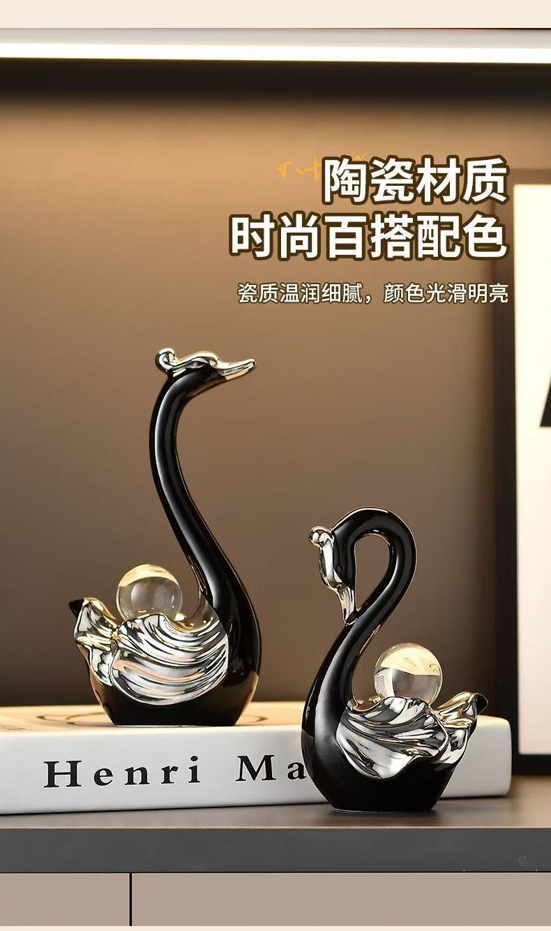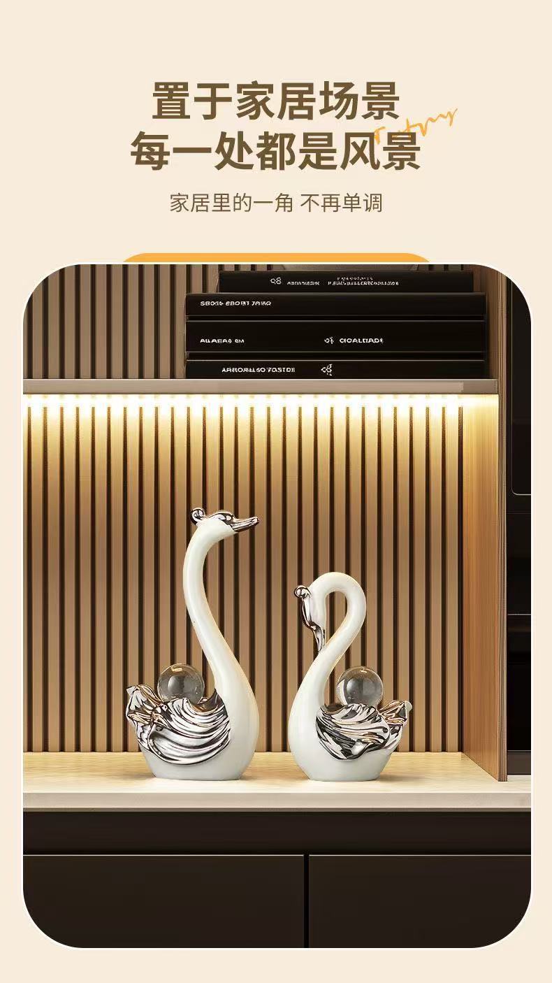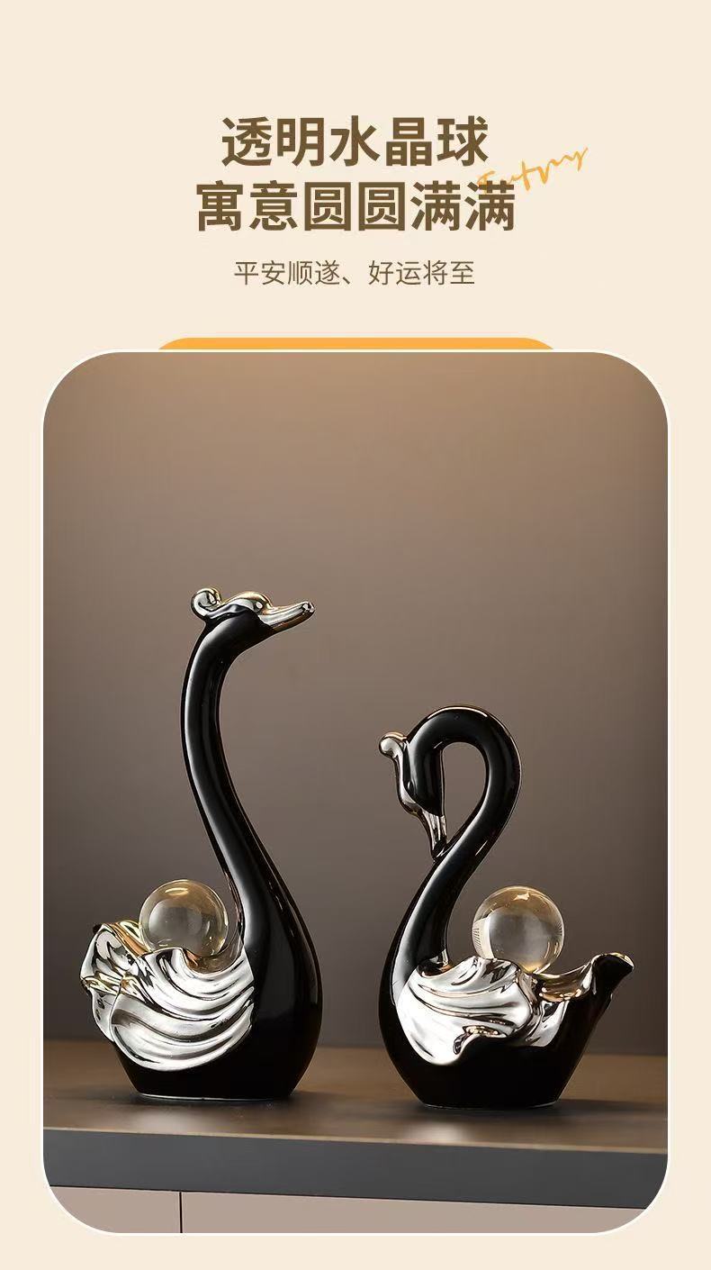 小号情侣天鹅摆件新款创意现代轻奢家居玄关客厅酒柜电视柜装饰品