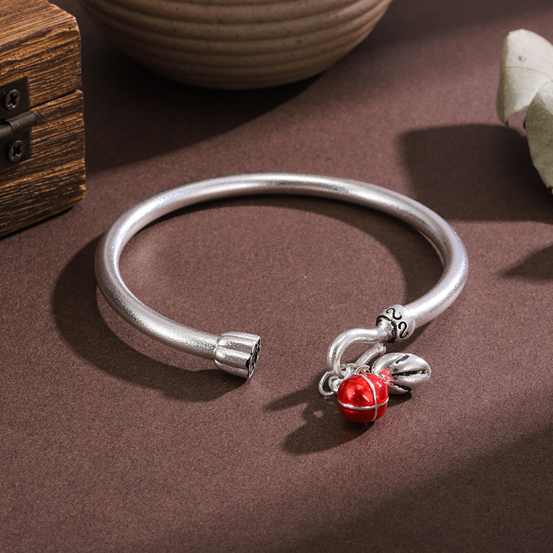震え音生中継白銅メッキ銀古法ブレスレット女夏小衆伝承若い素輪中実ブレスレットネット赤手環