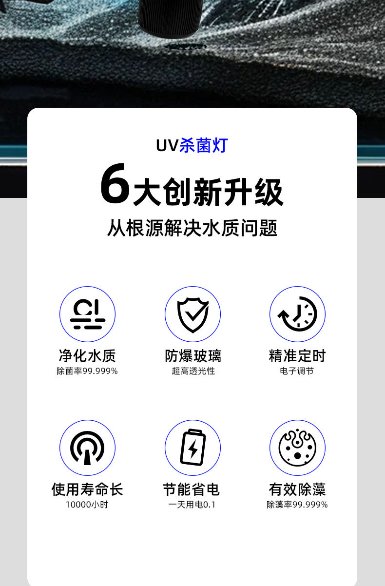 水槽uv殺菌灯紫外線魚池浄水除藻潜水滅菌灯水族消毒灯定時殺菌灯