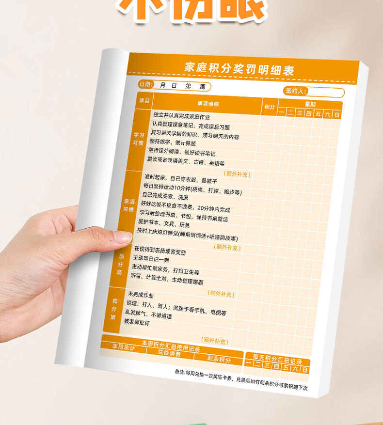 家庭积分本自律打卡小学生记录本奖罚卡自律好习惯明细表记录本