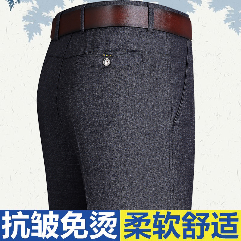 規格品春秋冬中高年カジュアルパンツ高腰深段ゆったり抗シワ無パーマ男性ズボン父ズボン