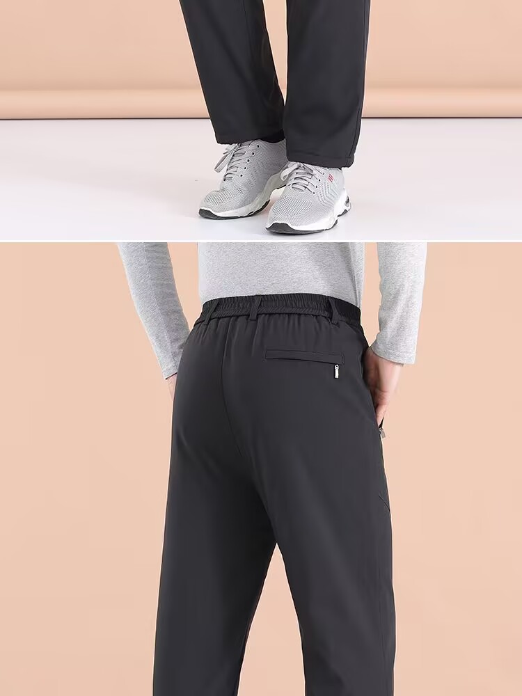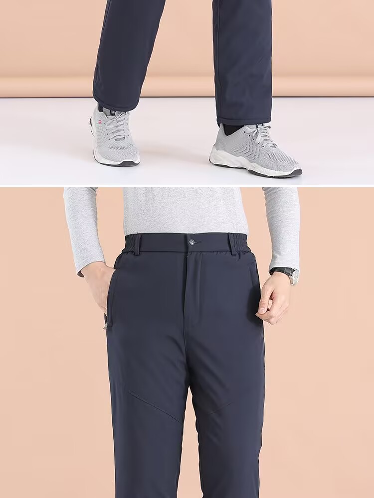 ベルベットは男性の冬の弾力性ズボンの中で高齢者の腰の高い深さを厚くして、お父さんはストレートのズボンを着ています