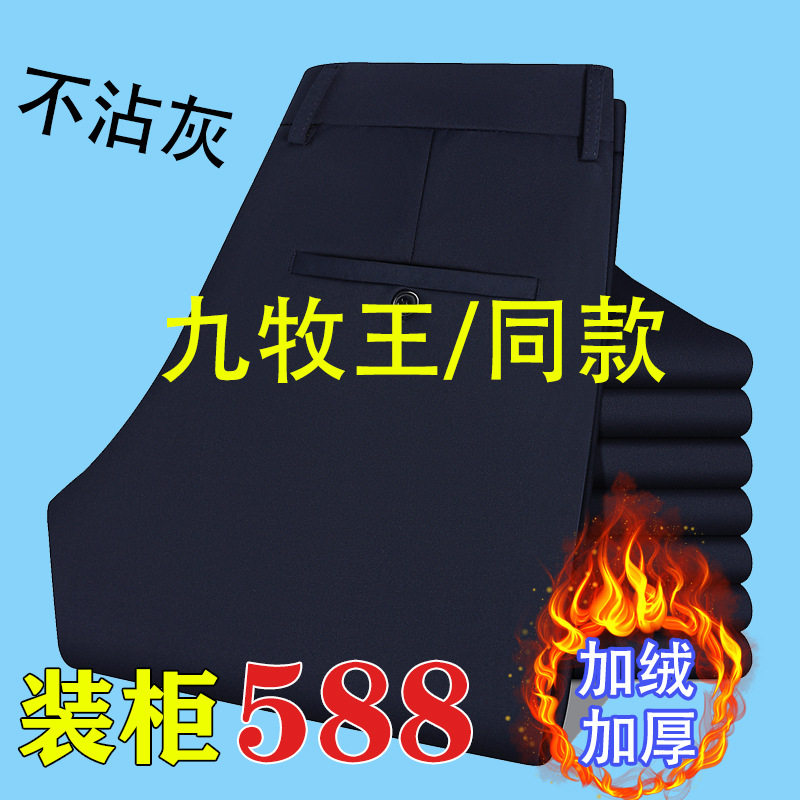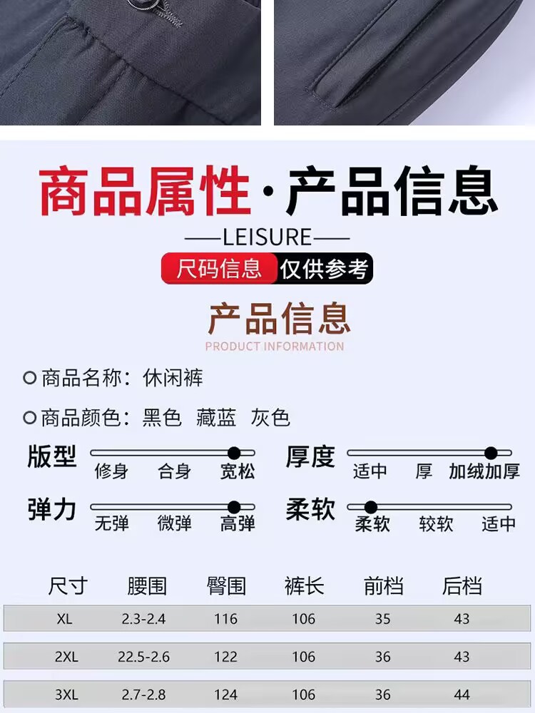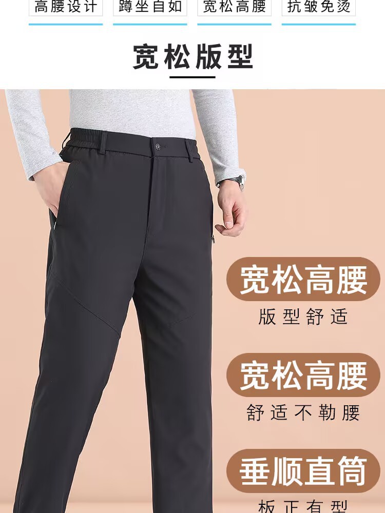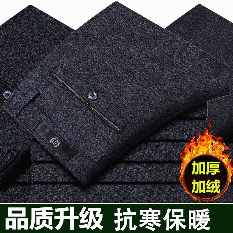 加绒加厚中老年人高腰宽松爸爸装直筒西裤秋冬中年休闲裤男士裤子