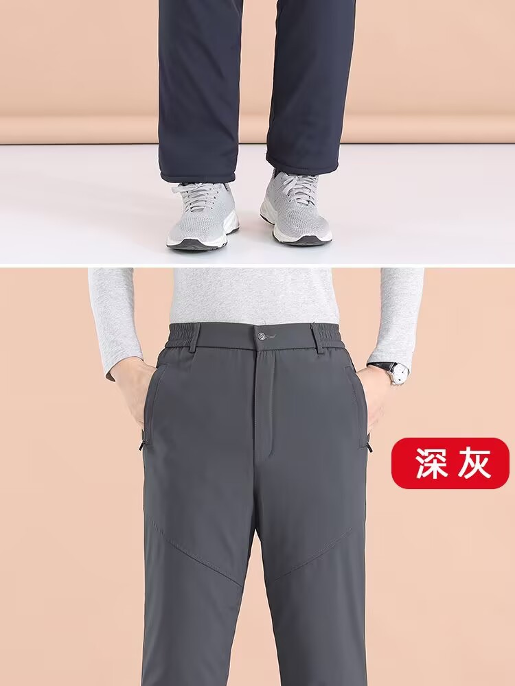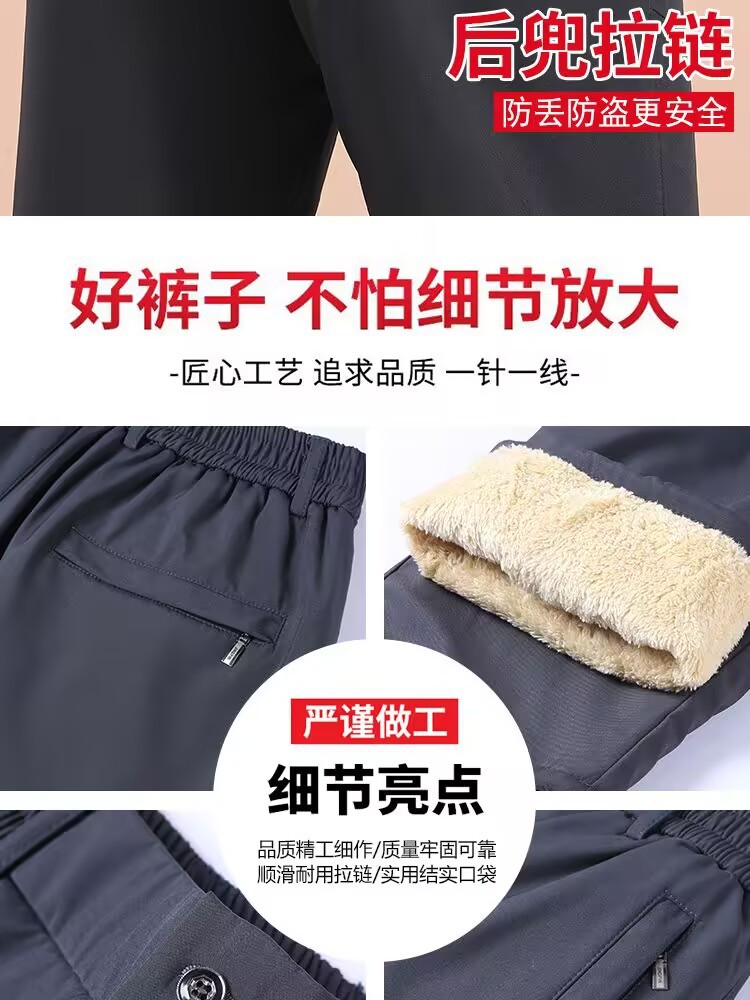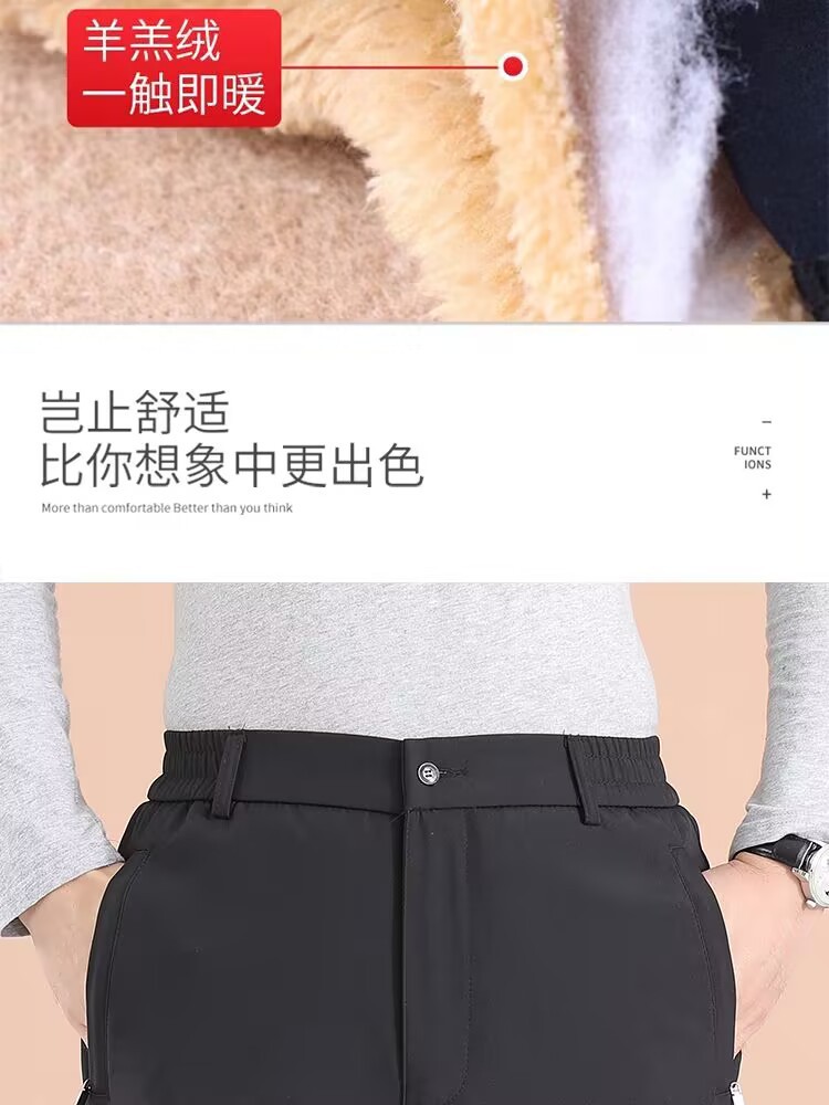 冬季加绒加厚裤子中老年男士羊羔绒休闲裤爸爸冬装西裤老人保暖裤
