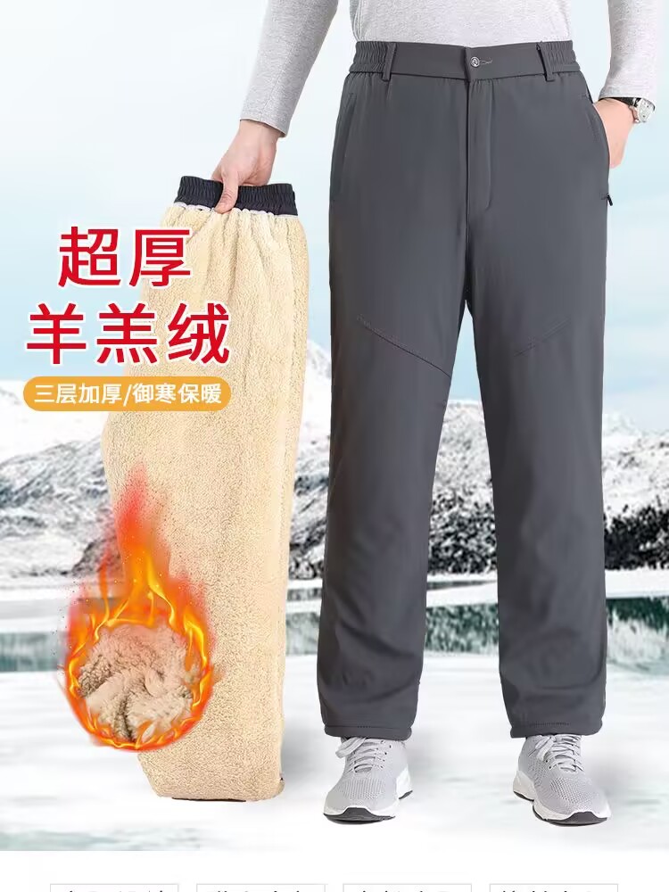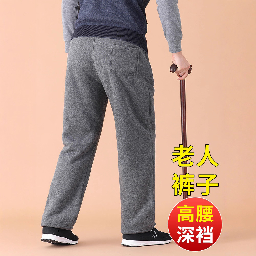 秋冬季加绒裤子保暖老人爷爷羊羔绒保暖裤中老年人棉裤男加绒西裤