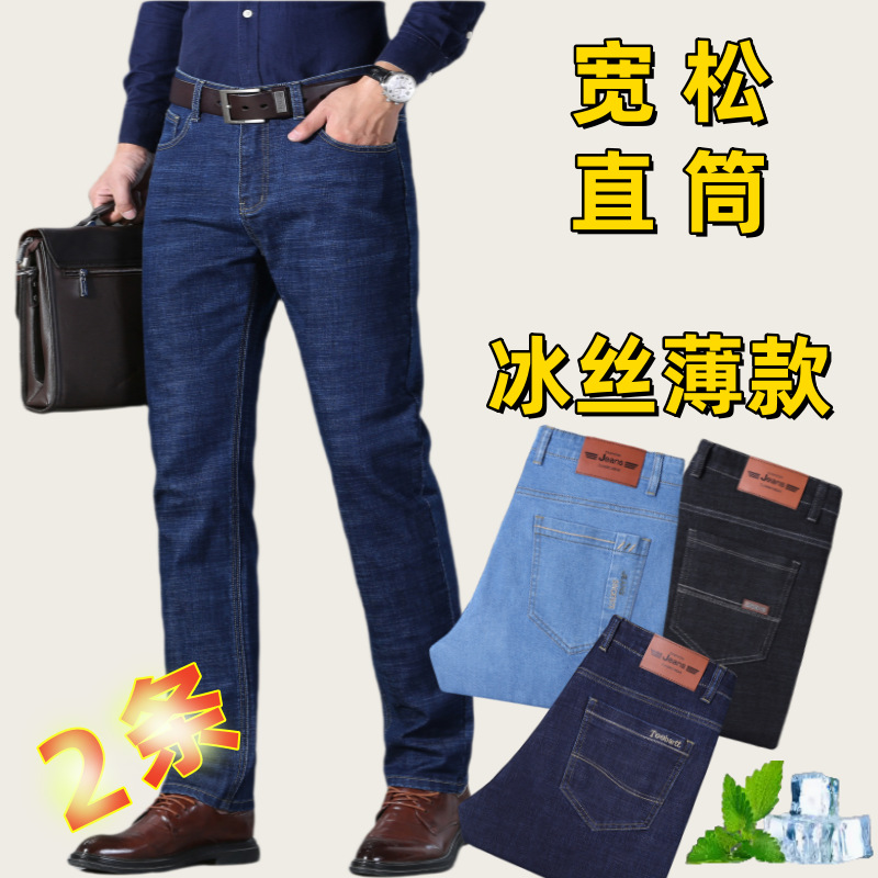 広州新塘鎮の高級人気メンズ 2025 夏の新作ジーンズメンズストレートレッグルーズ薄手パンツ