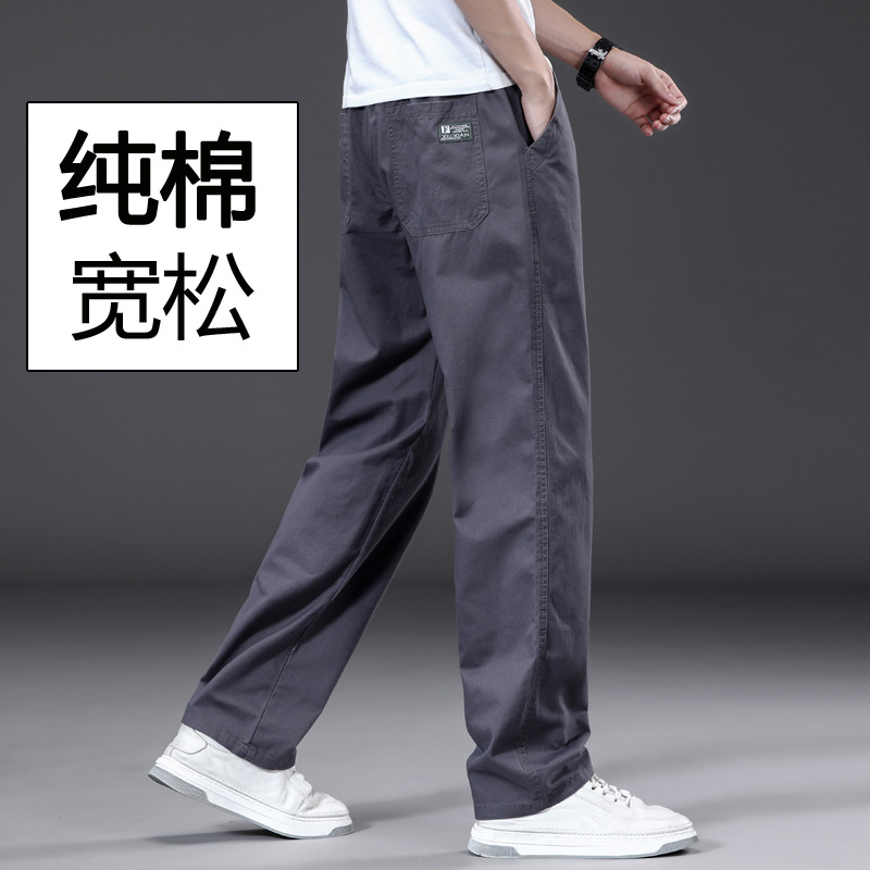 100純綿カジュアルパンツ男性直筒春夏ズボン純色長ズボン大サイズワイド脚ゆるい綿ワークパンツ