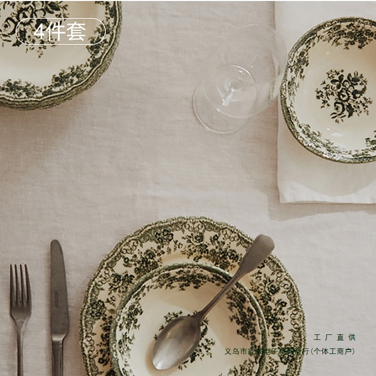 ヨーロッパ式レトロ陶磁器8インチ盤ホテルレストラン骨磁器ステーキ盤4枚円形ギフトボックス包装プレゼント