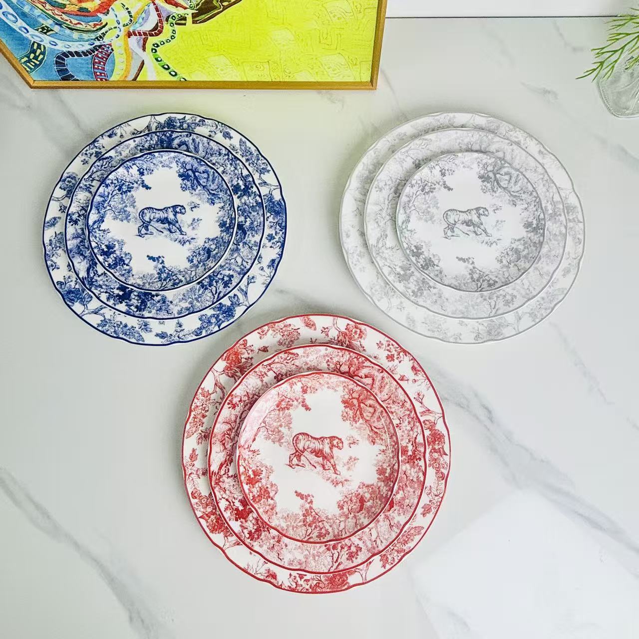 新型迪家赤青虎シリーズ食器ヨーロッパ式家庭用骨磁器洋食ステーキ皿セット卸売り