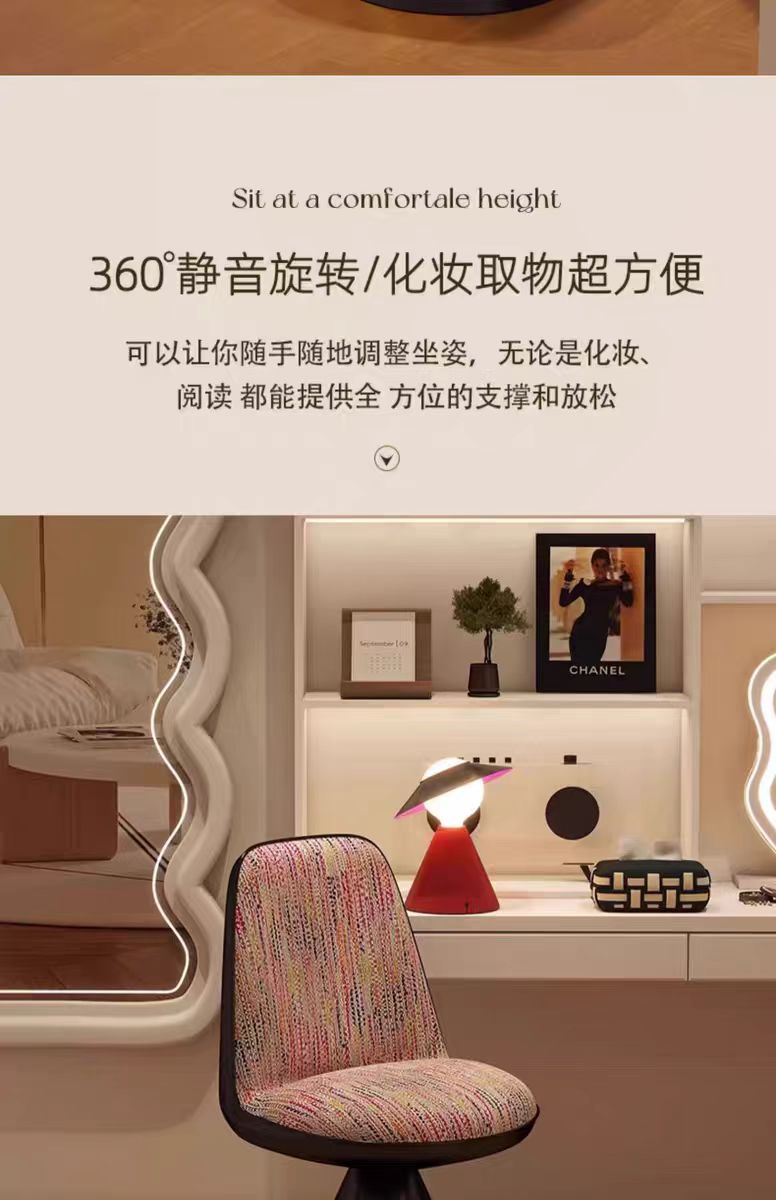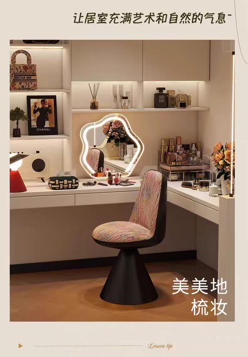 卧室轻奢化妆椅子意式高级化妆凳可旋转靠背梳妆台凳小香风罗比椅