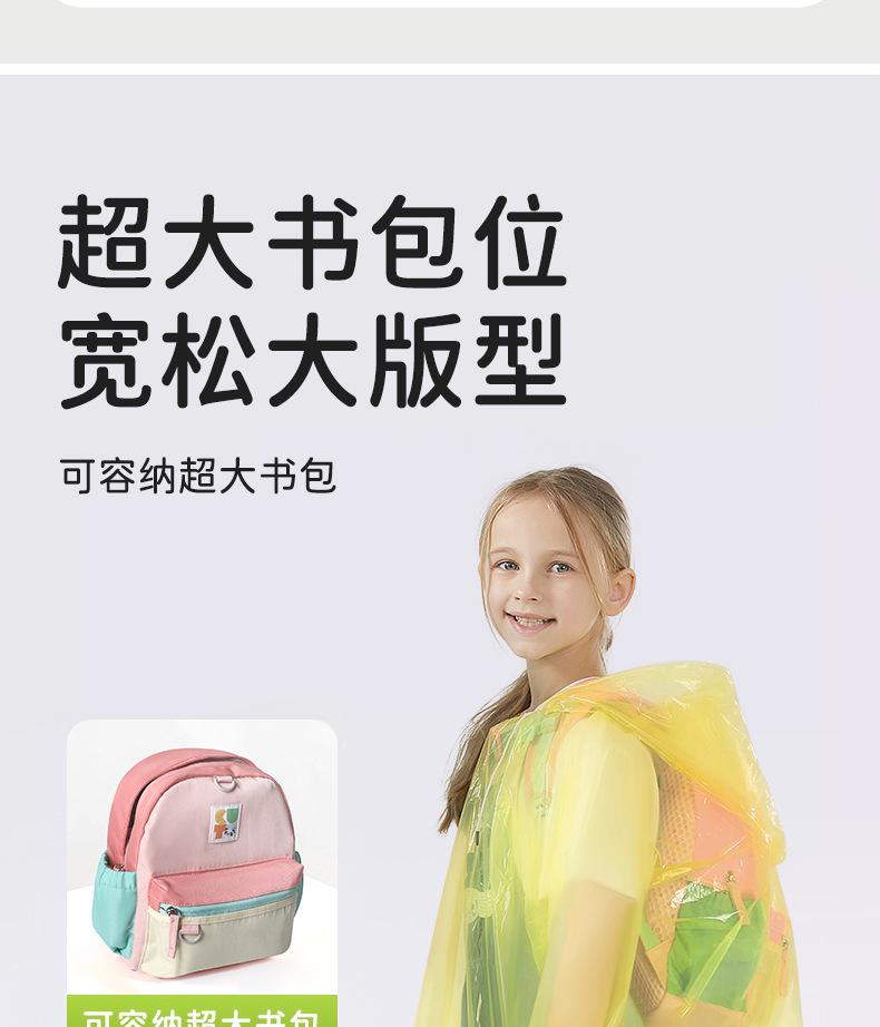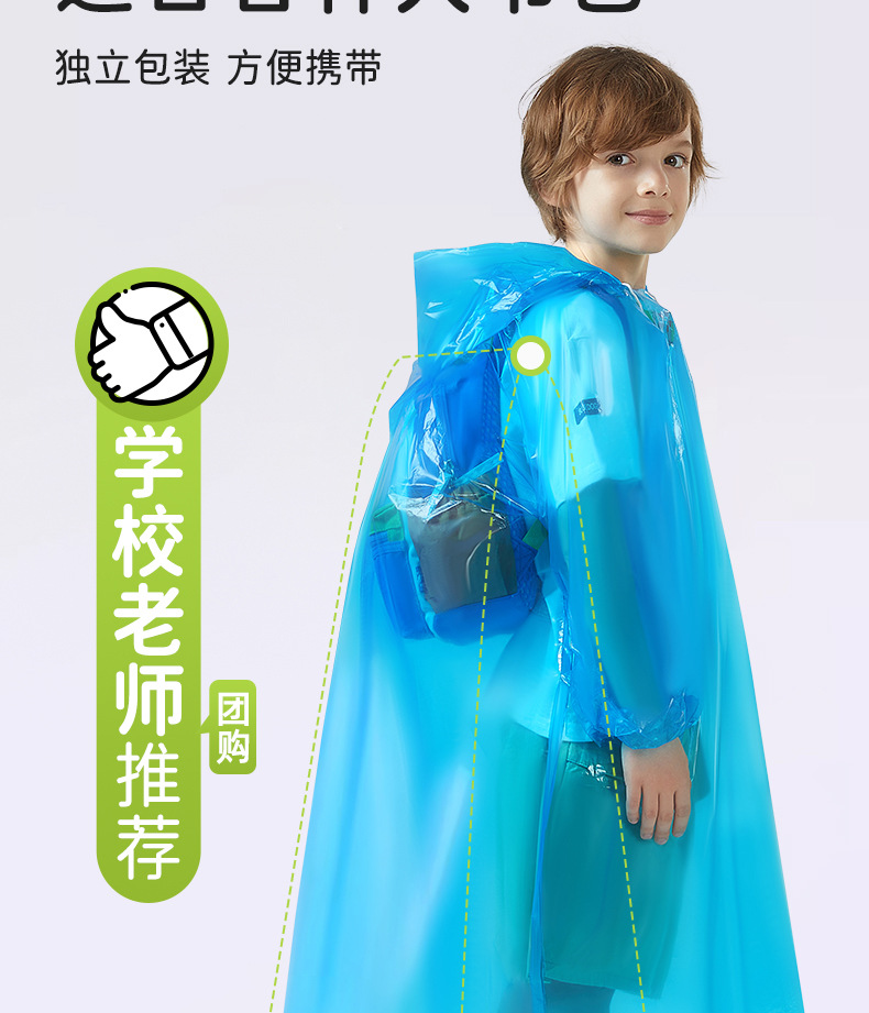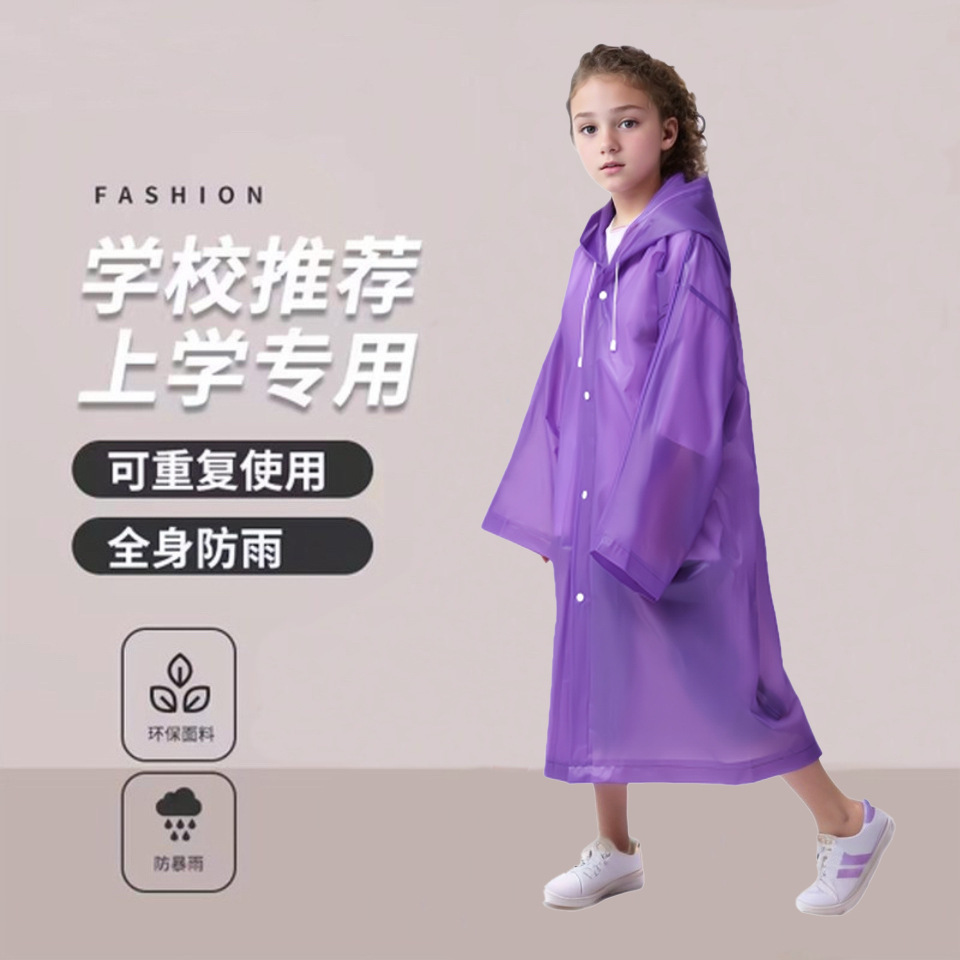 一次性儿童雨衣加长连体EVA雨衣小孩小学生上学可背书包长款雨披