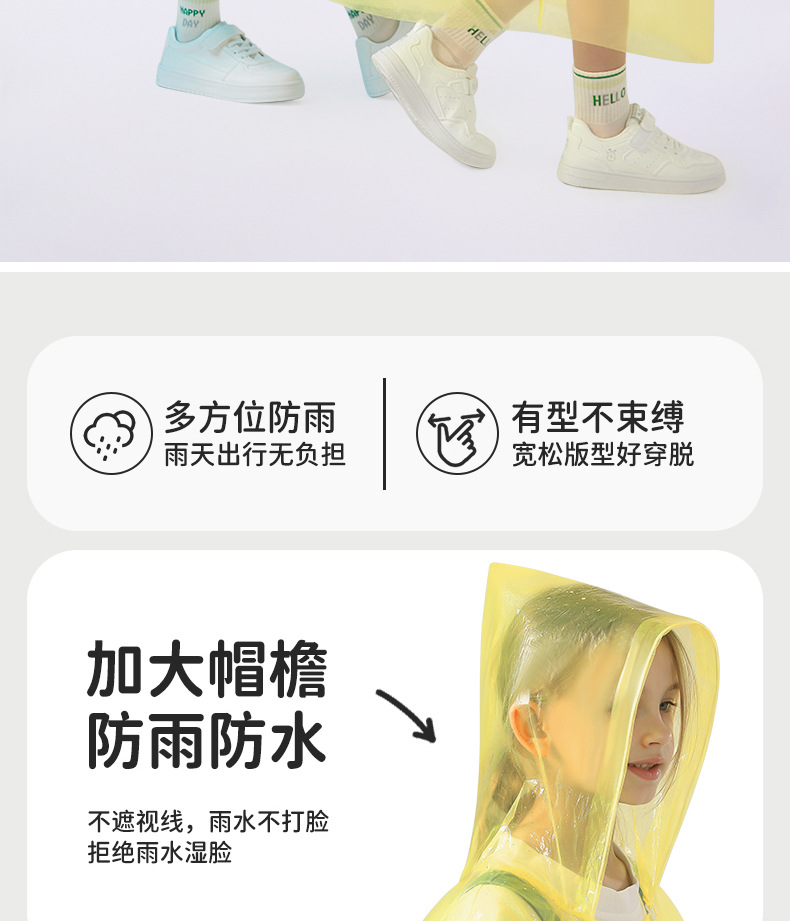儿童一次性雨衣大帽檐雨衣小学生上学专用Peva雨衣长款连体雨衣