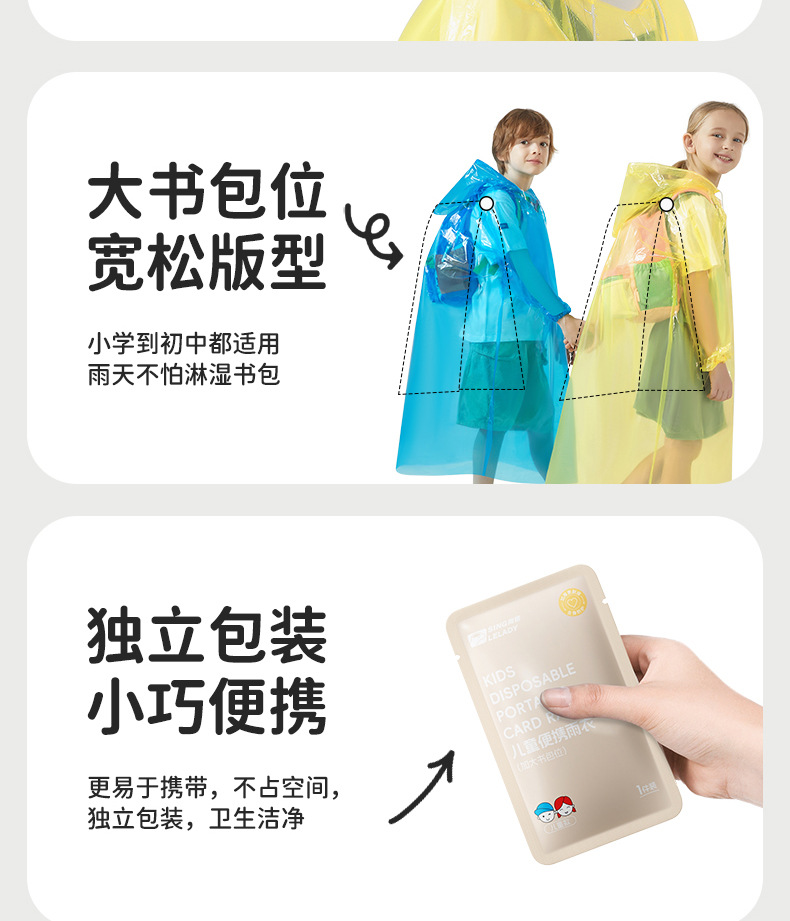 儿童一次性雨衣卡片便携全身防水大童雨披加厚学生简易口袋雨衣