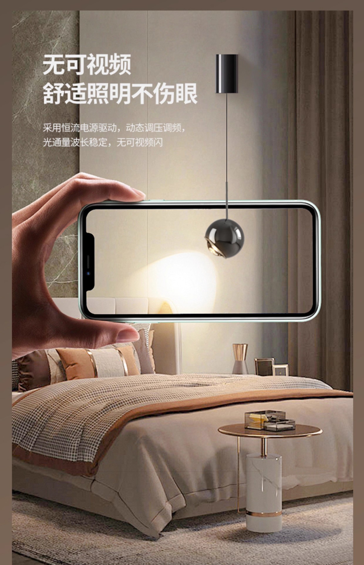 可升降悬停卧室床头壁灯意式轻奢极简手扫感应智能小山丘吊线壁灯