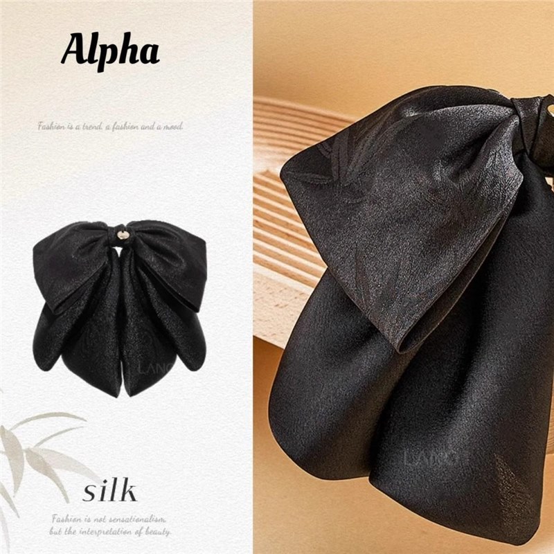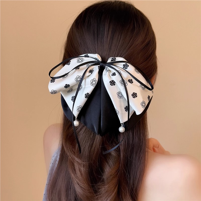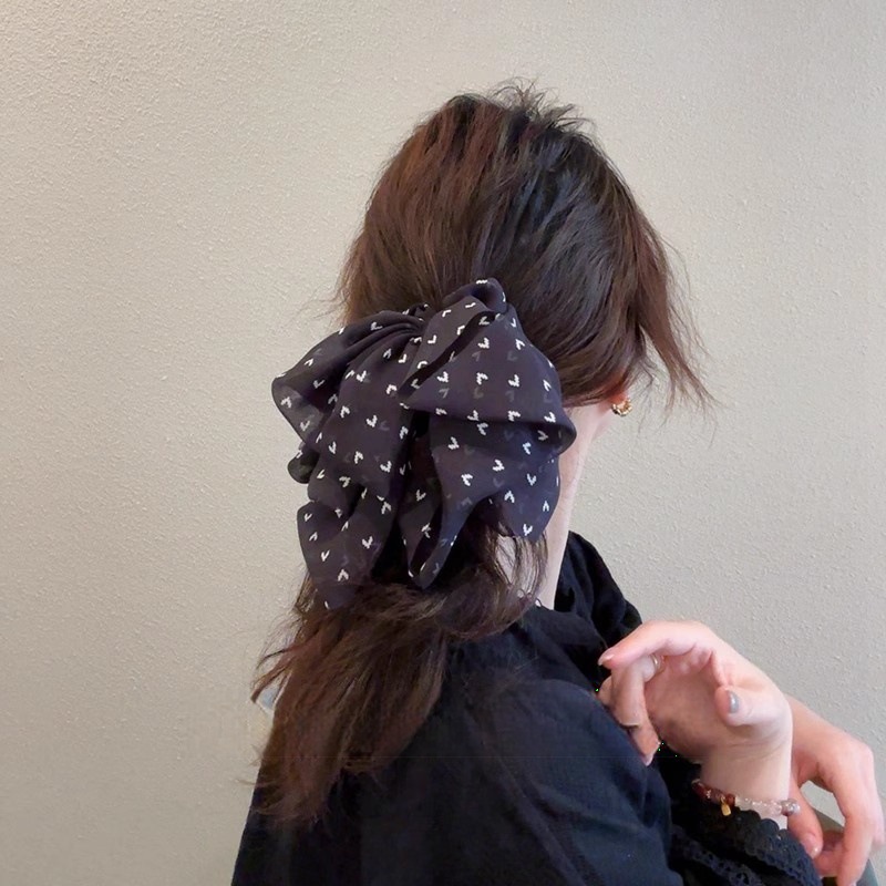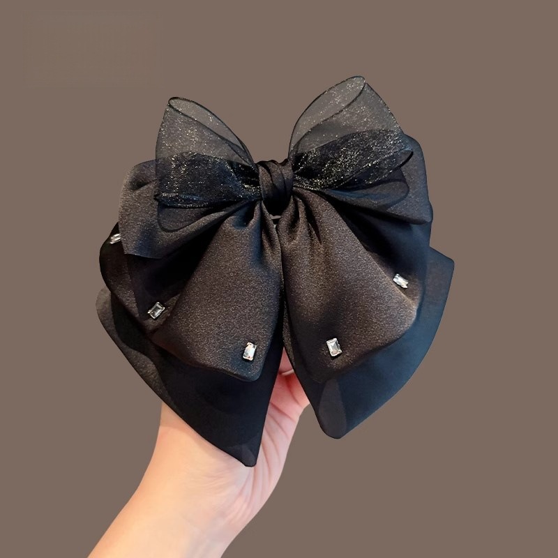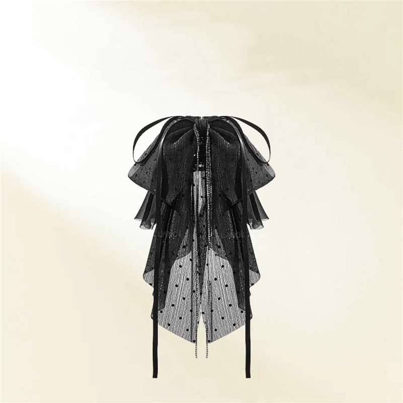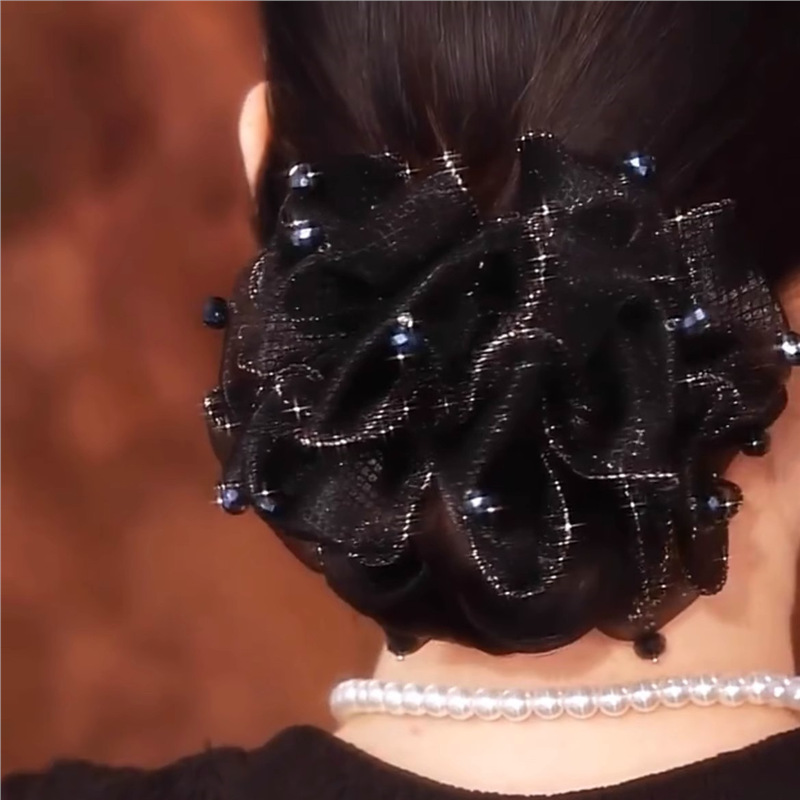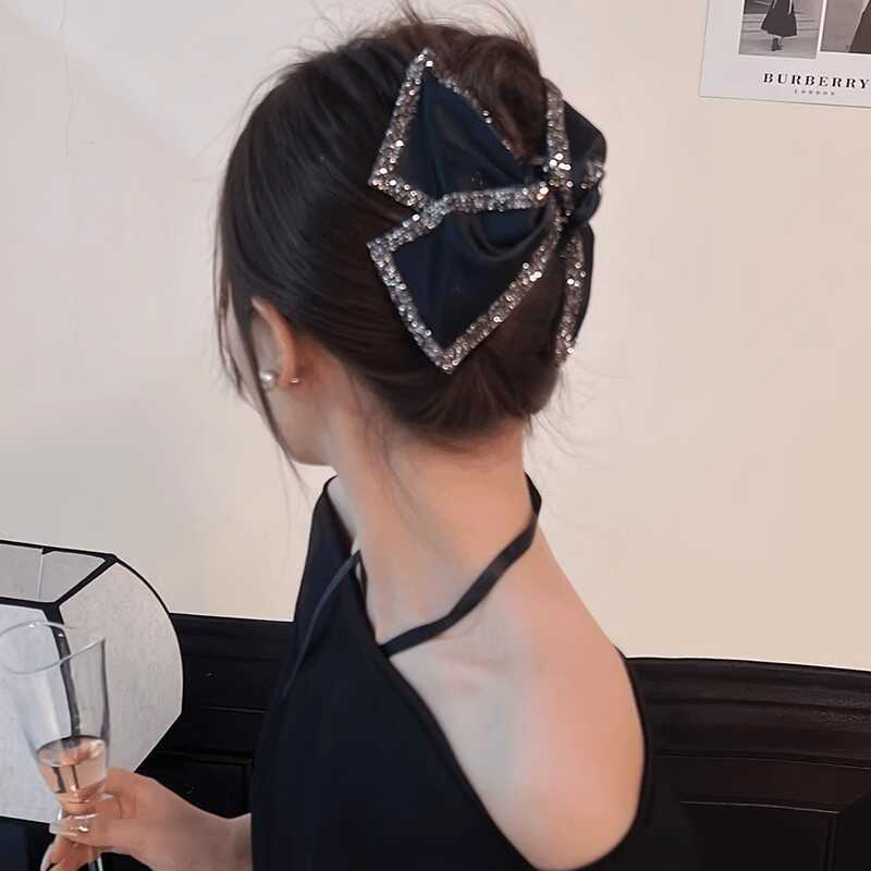 2025年新作韓国シフォンブラックリボンポニーテールクリップ後頭部用、髪のボリュームを高める高級ヘアクリップ