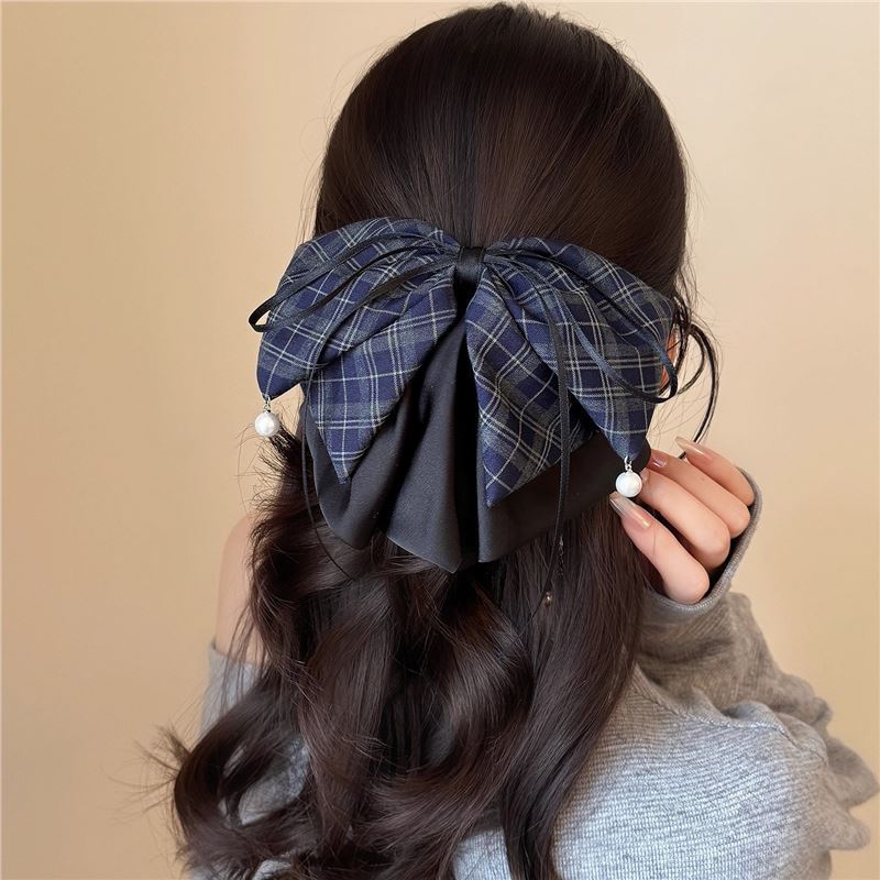 发夹女2025新款高级感格纹蝴蝶结马尾夹后韩版小清新脑勺半扎发夹