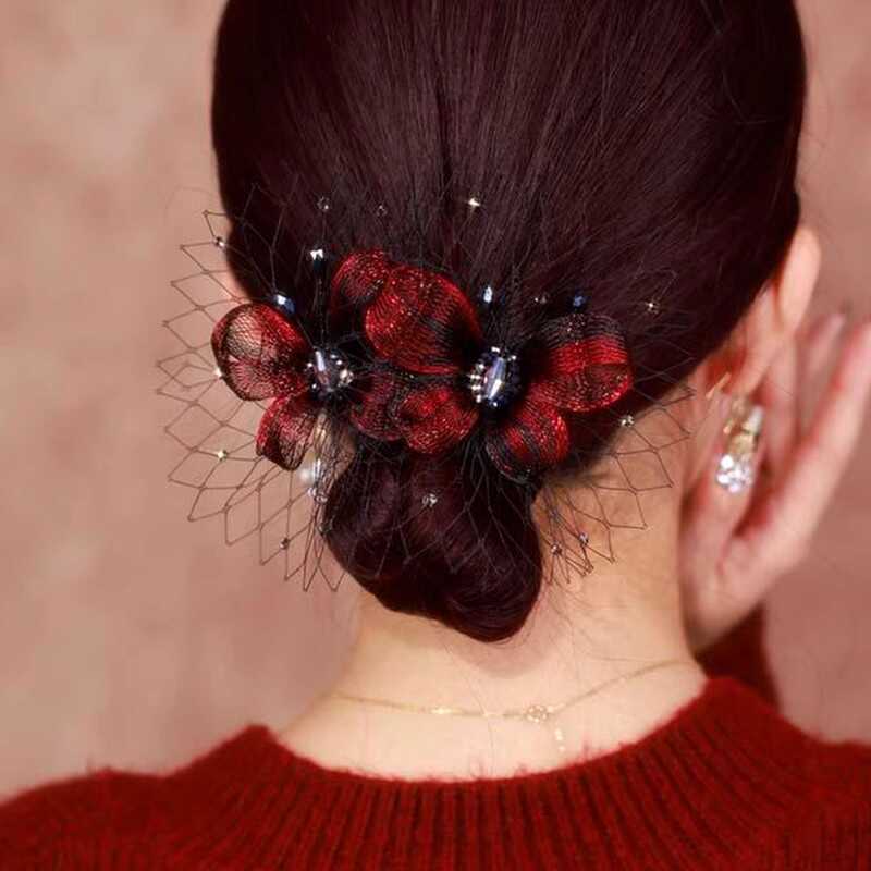 洗練された優雅な白鳥ヘアピン女後頭部2024新高級感丸子頭盤髪サメクリップ女