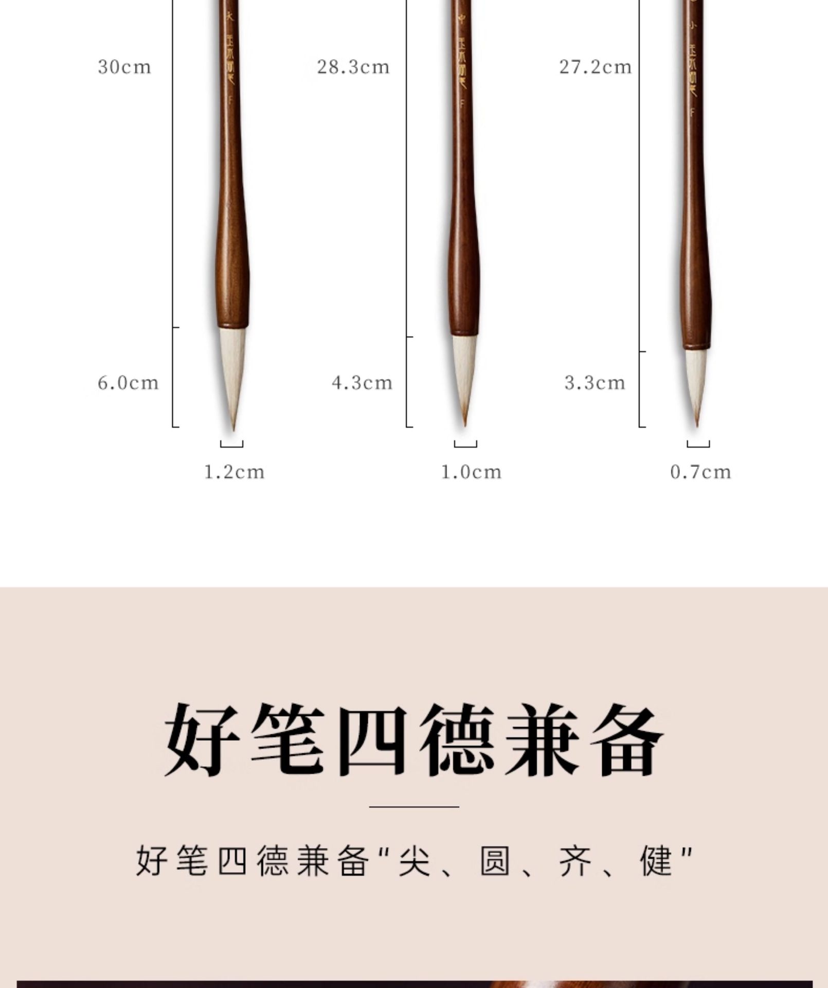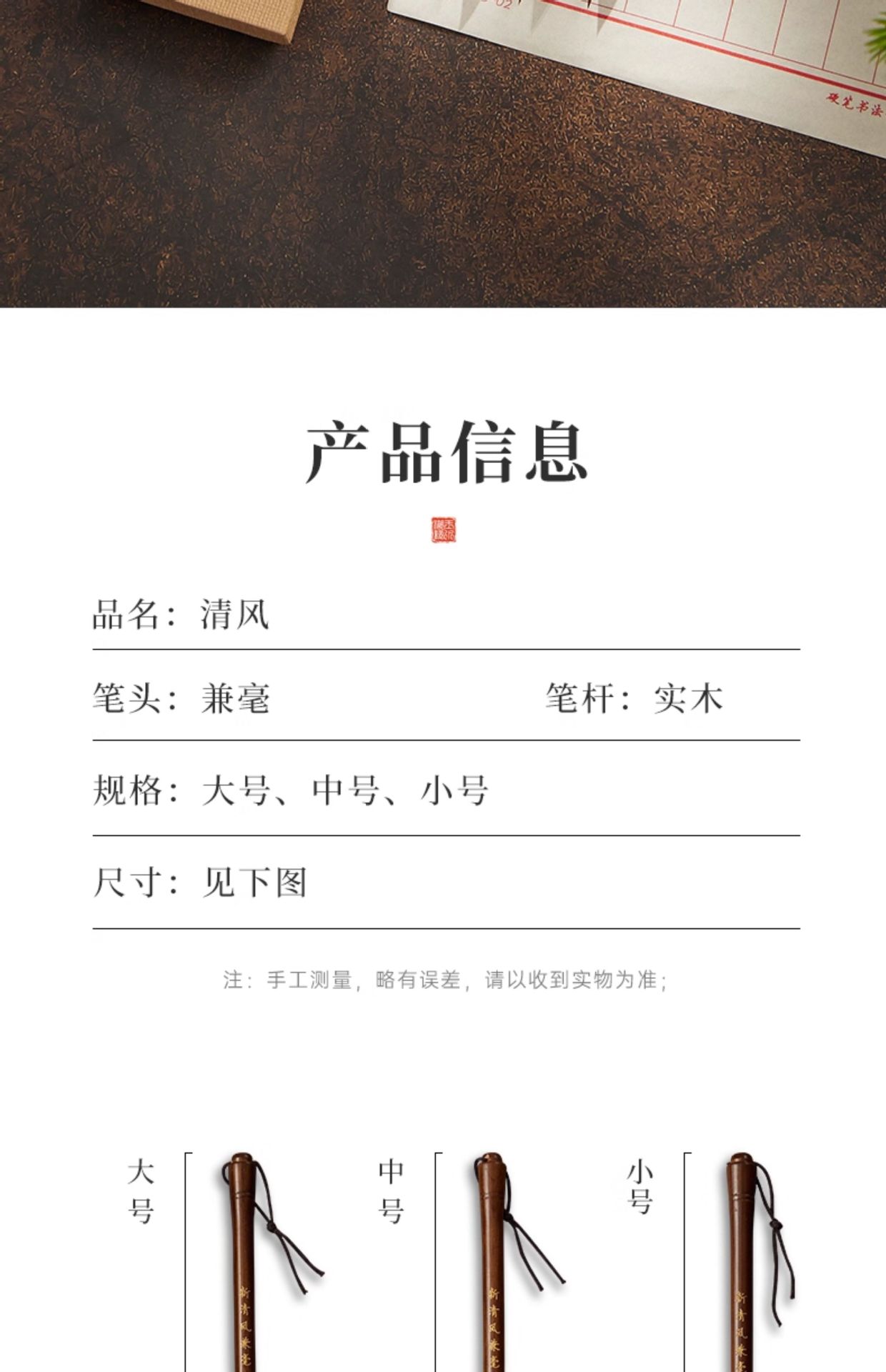 规格 楷书新清风兼毫小【出锋3.5cm 口径0.9cm】,楷书新清风兼毫中【出锋4.5cm 口径1.0cm】,楷书新清风兼毫大【出锋5.0cm 口径1.1cm】,楷书新清风兼毫【三支装】,楷书新清风兼毫小【礼盒装】,楷书新清风兼毫中【礼盒装】,楷书新清风兼毫大【礼盒装】,楷书新清风兼毫大中小【三支礼盒装】