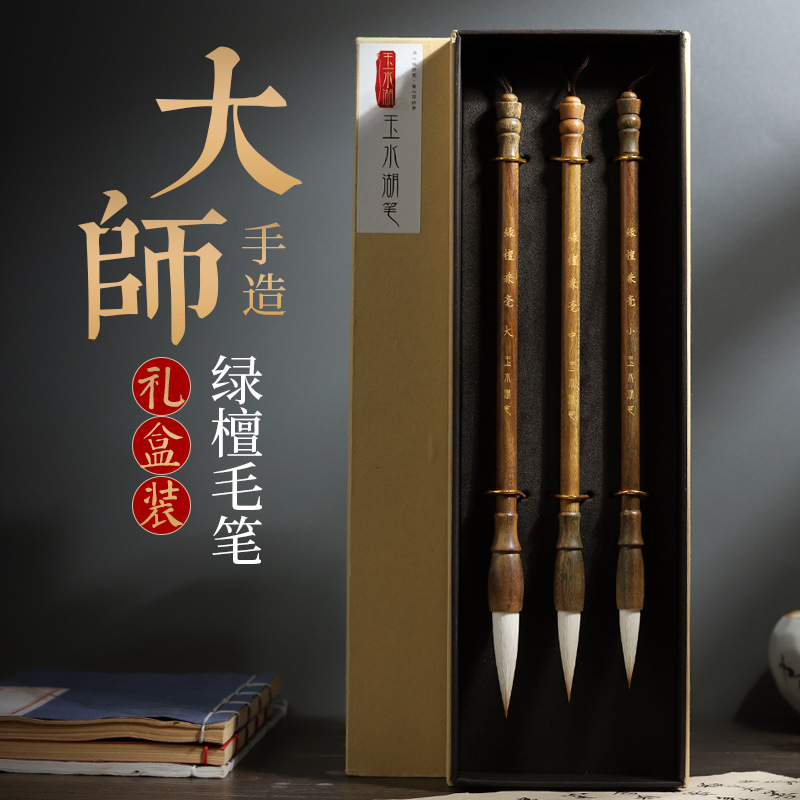 Yushuhu 緑白檀筆セット プロ仕様の狼毛と羊毛の中国絵画、楷書、行書、高品質の書道コピー