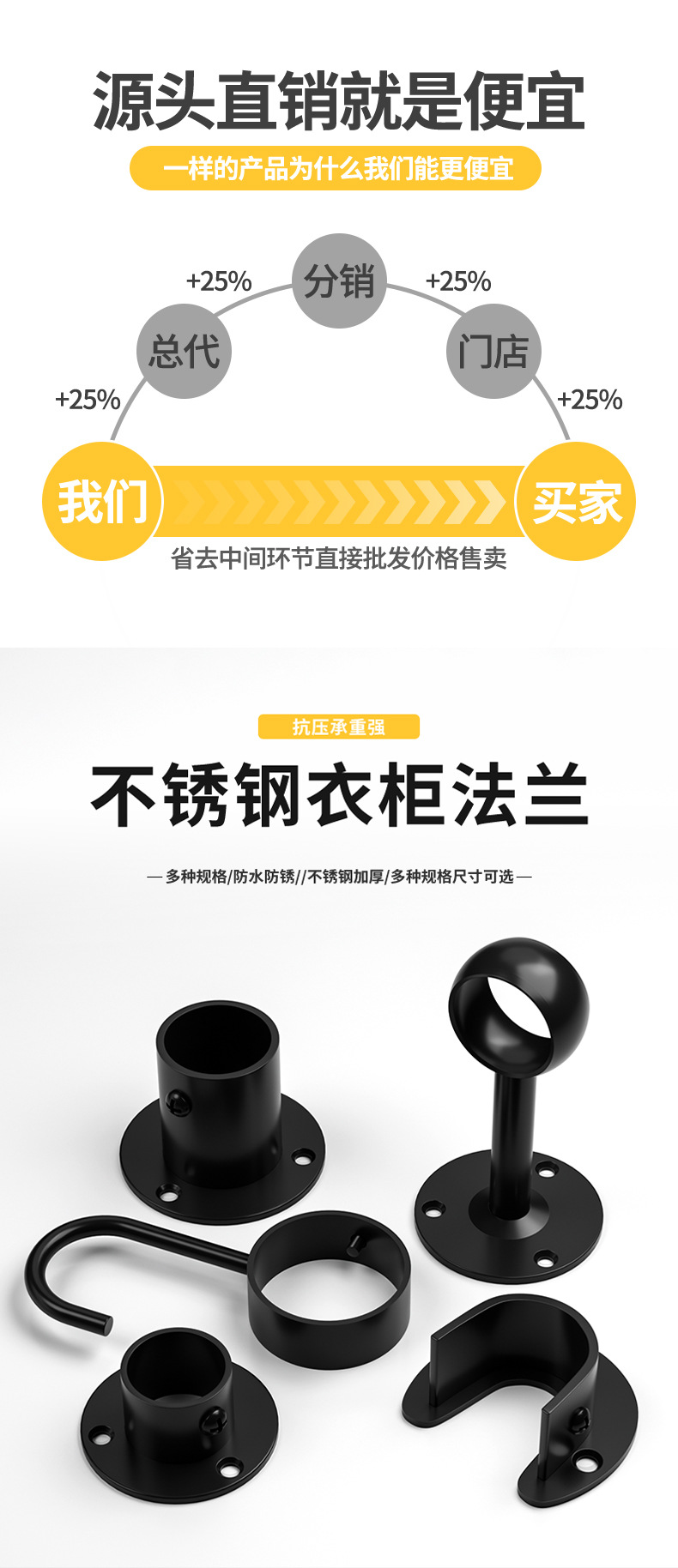 ステンレスフランジ座ステンレス円管低足ベース掛け服ポール服タンス服通管フック出荷価格