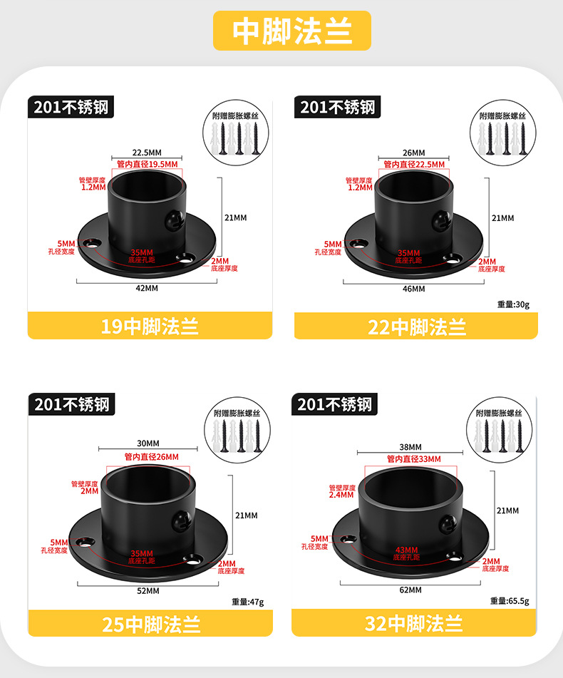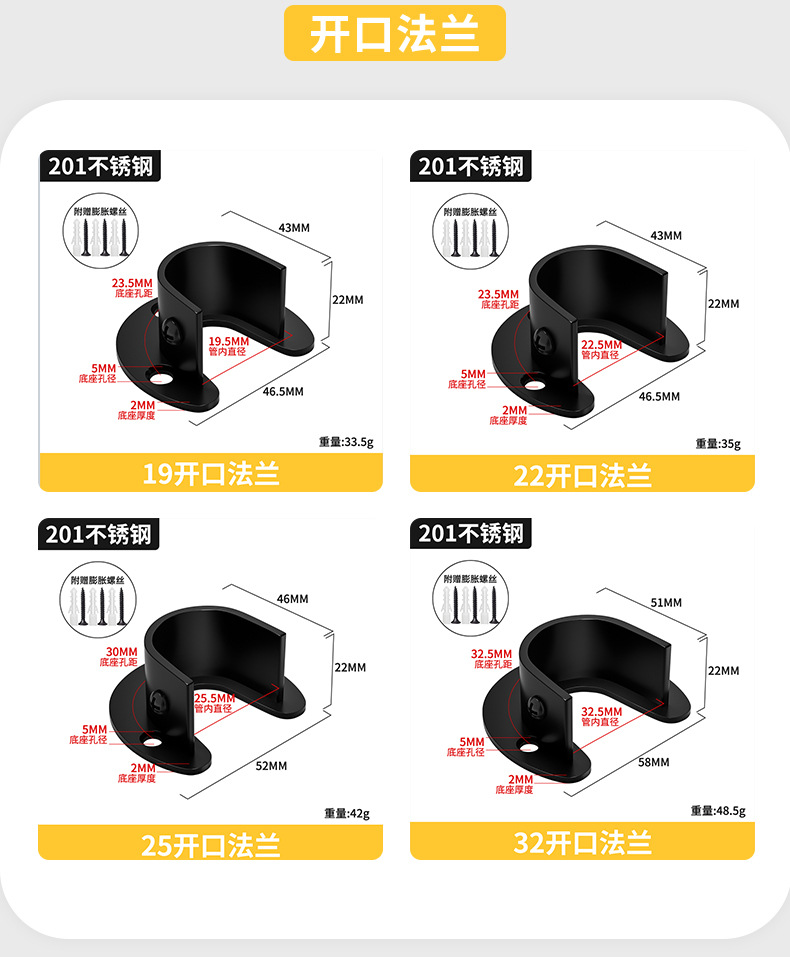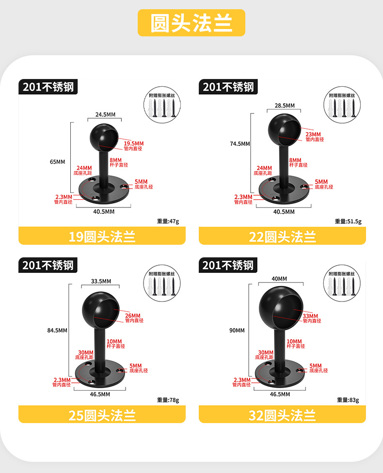不锈钢黑色法兰座圆头座高脚白色法兰座圆管座毛座巾喷涂黑固定座
