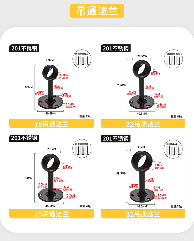 不锈钢吊杆晾衣管吊通不锈钢晾衣架座加厚实心吊座阳台晾衣法兰座