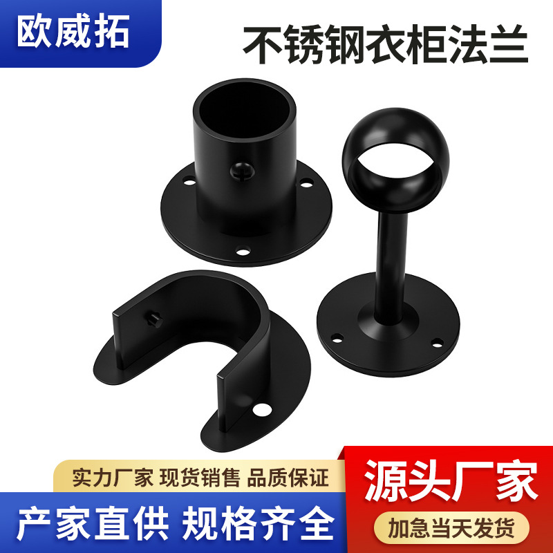 不锈钢黑色法兰座圆头座高脚法兰座圆管座毛座巾喷涂黑固定座