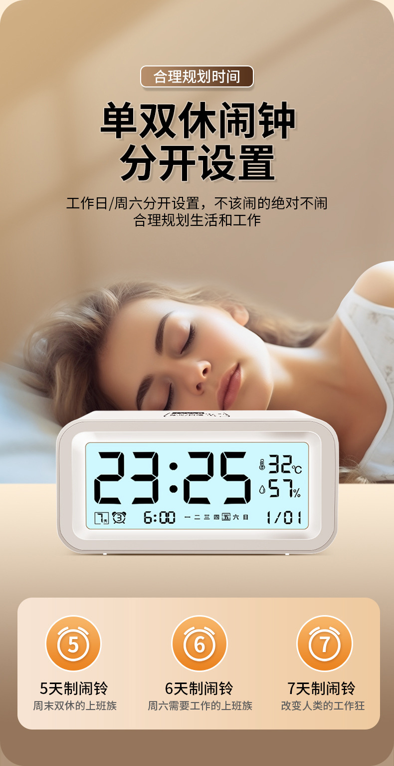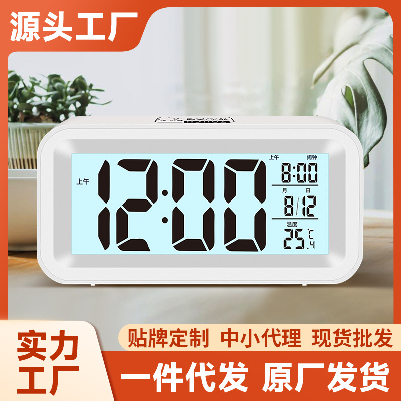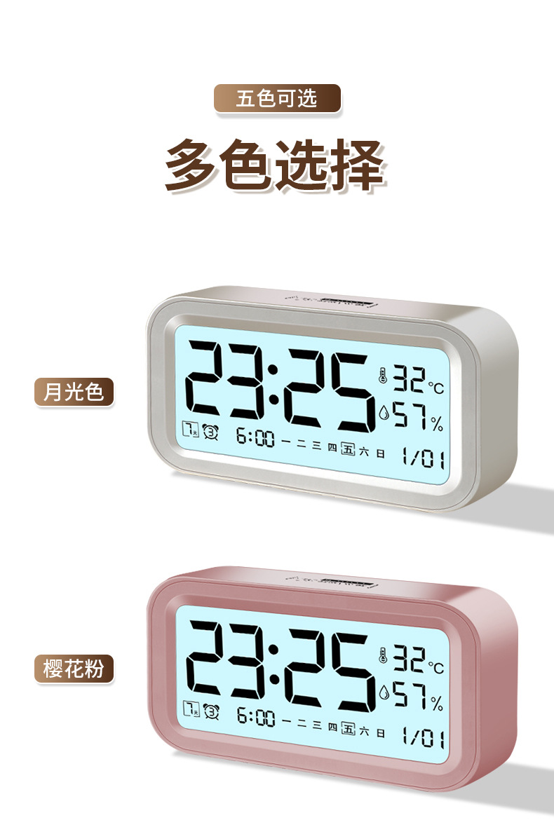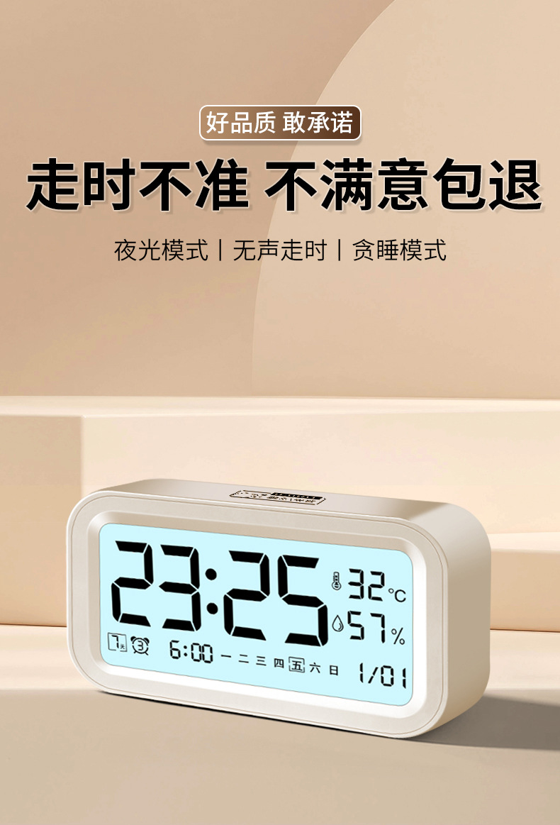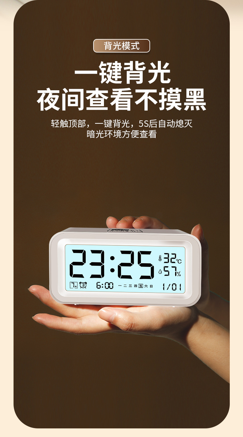 家用电子时钟充电台式桌面静音万年历闹钟壁挂温度计时钟表家背光
