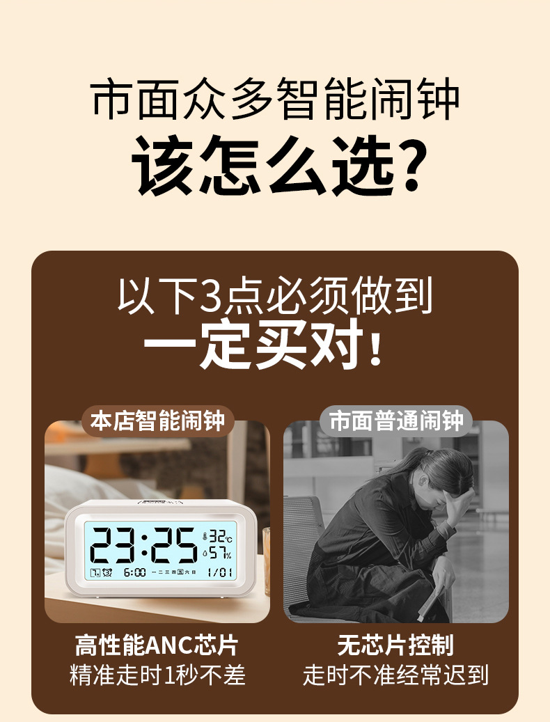 闹钟学生用静音床头简约创意电子钟儿童多功能小时钟宿舍闹铃夜光