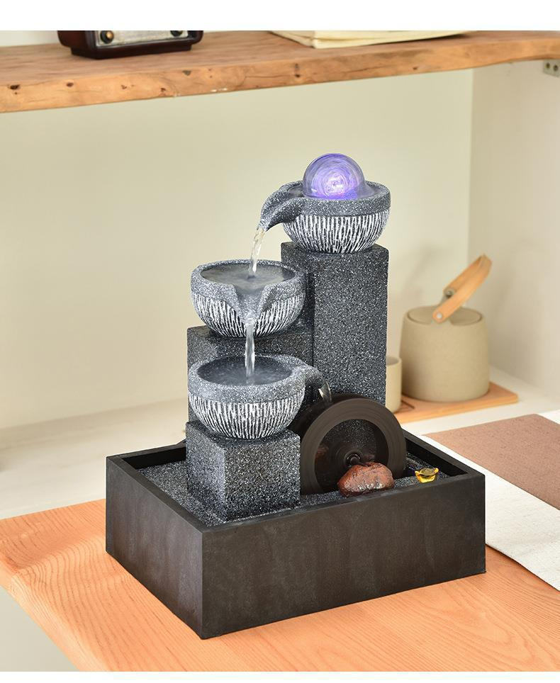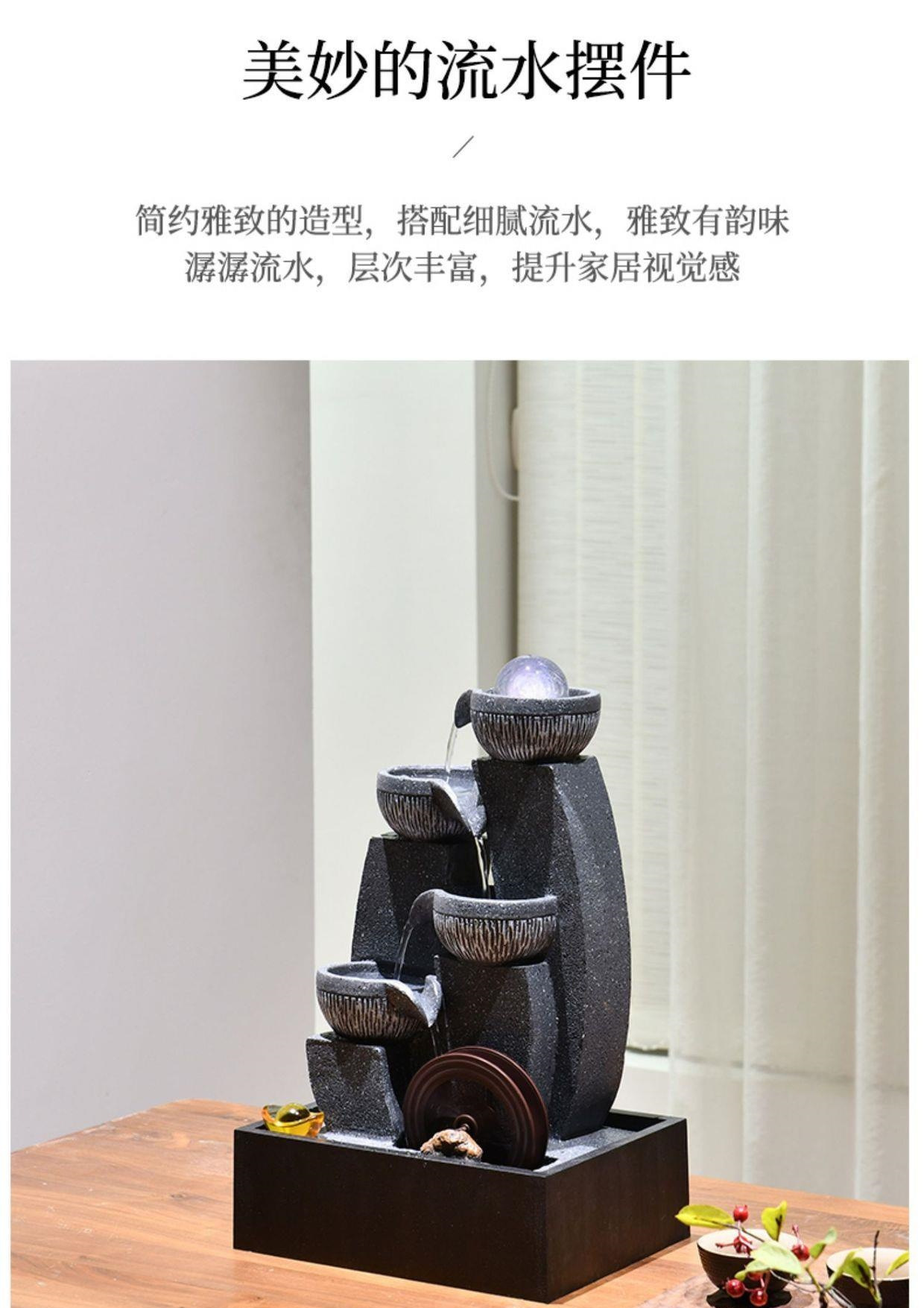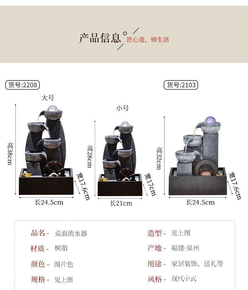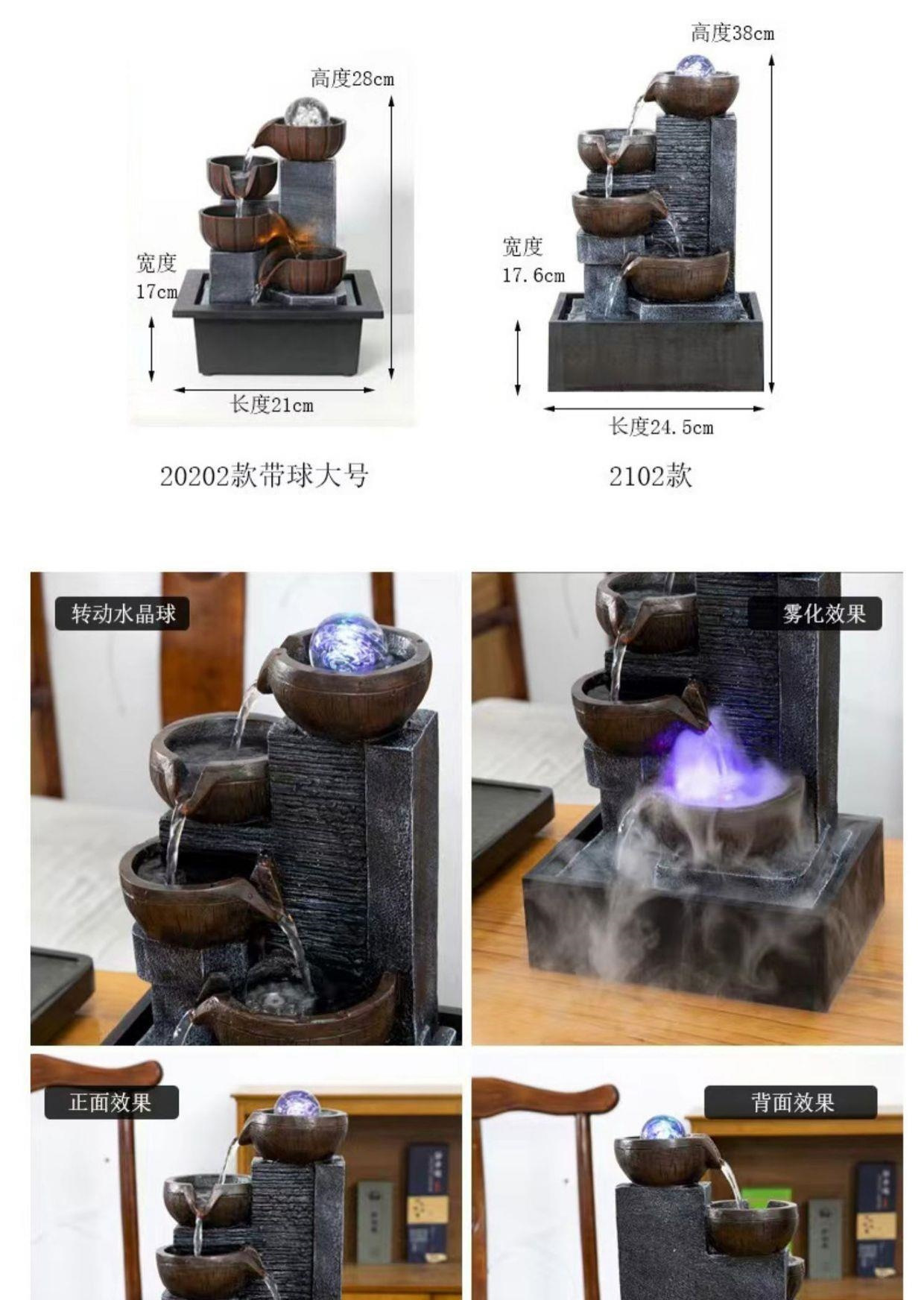 桌面流水摆件循环生财风水轮水车茶台小型喷泉水晶球树脂其他欧式