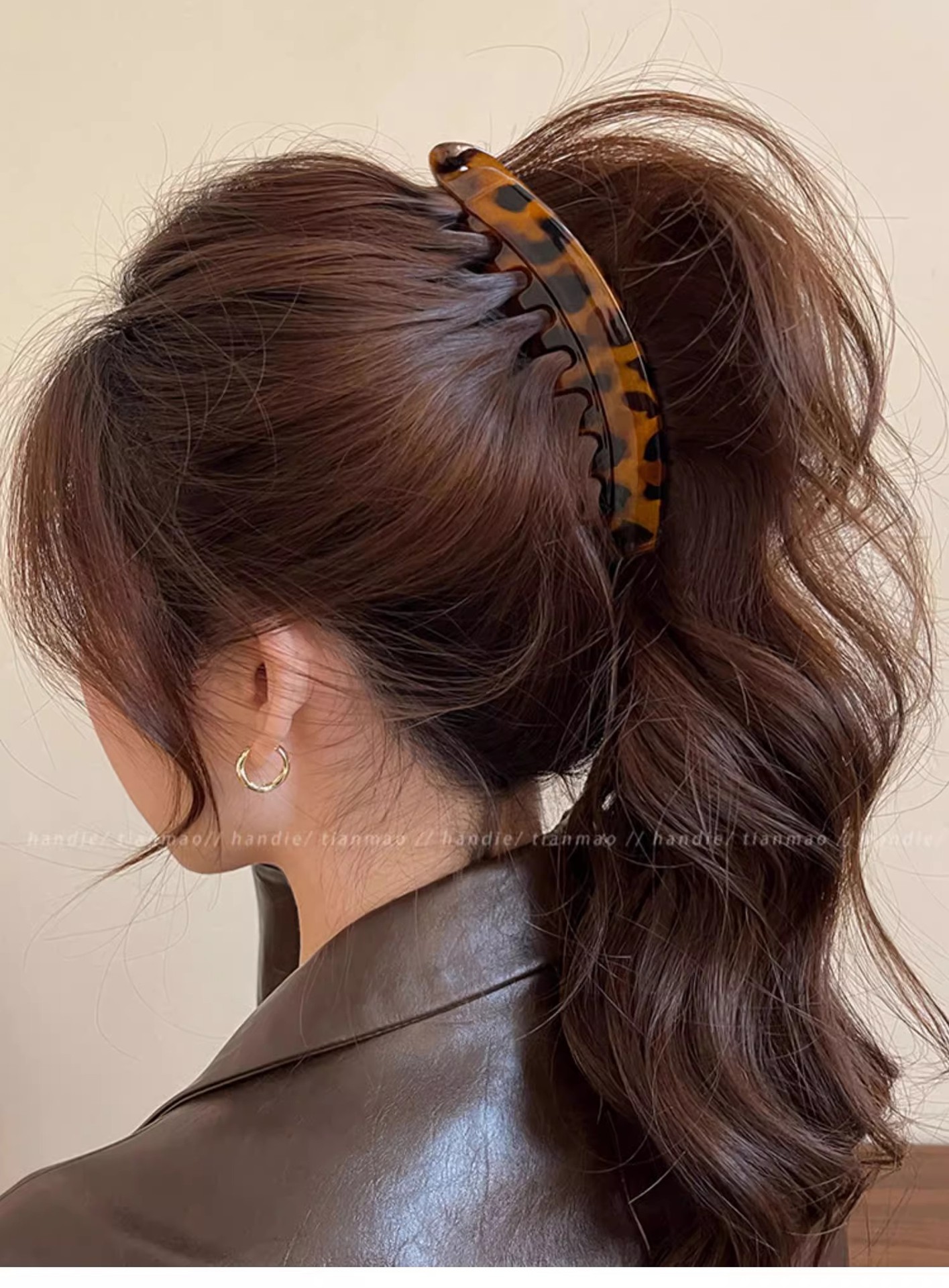 复古豹纹香蕉发夹女高级感马尾扭扭竖夹气质后脑勺显发量夹子头饰