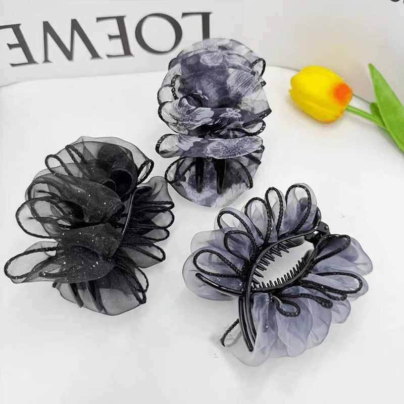 法式秋冬新款郁金香丸子夹气质时尚优雅网纱云朵中号抓夹发夹头饰