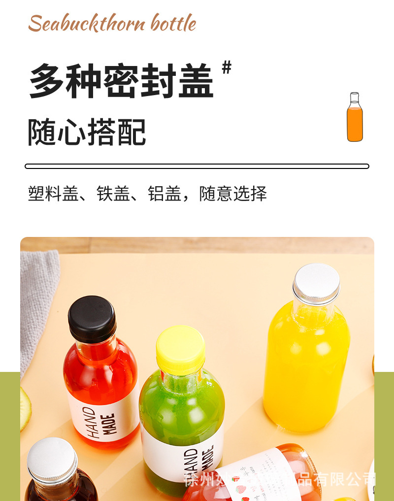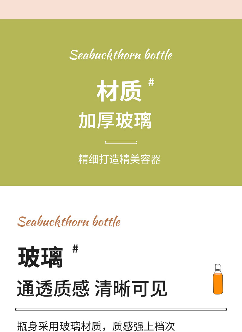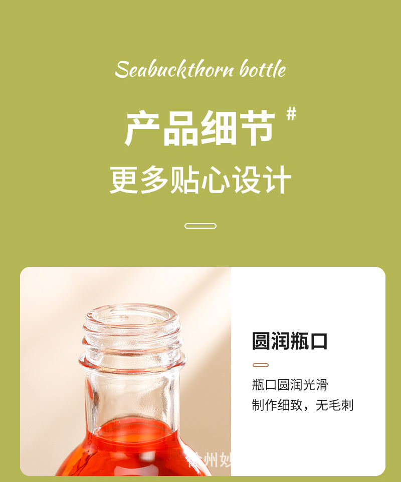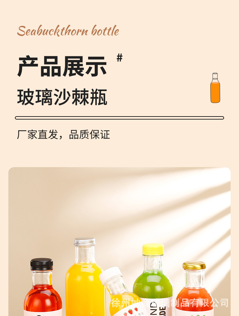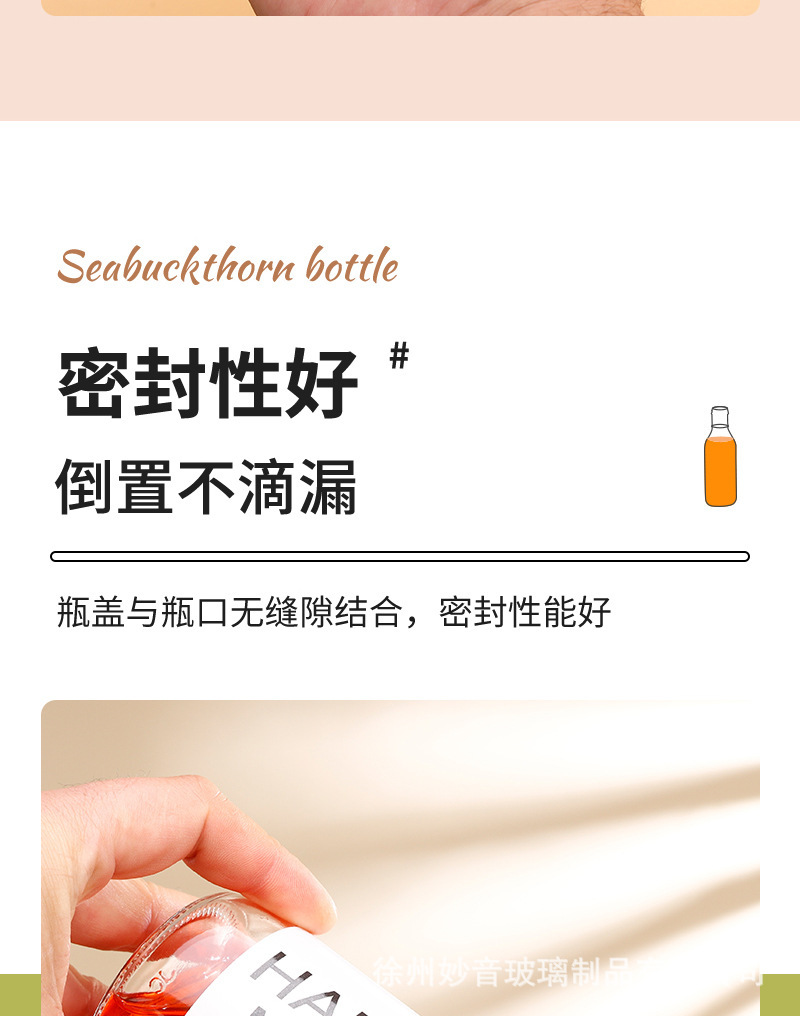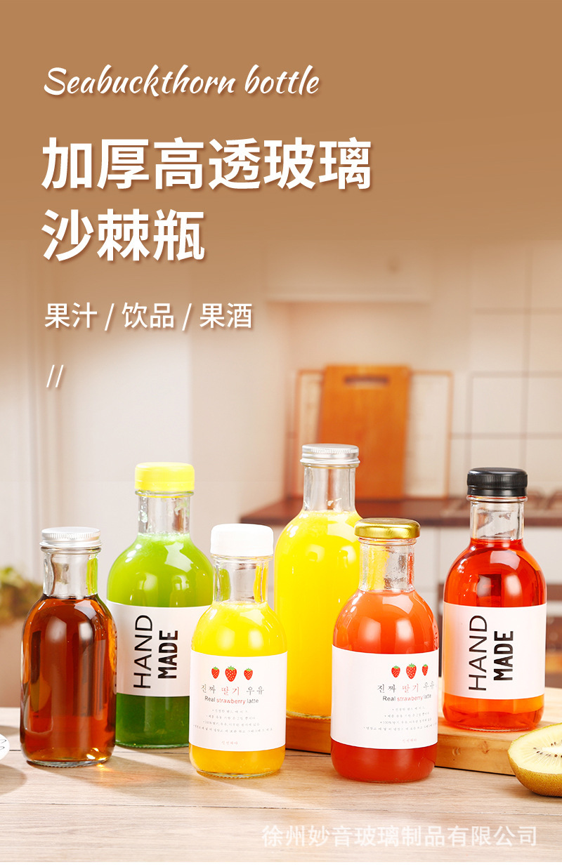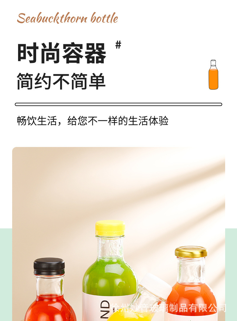 沙棘汁玻璃瓶透明玻璃饮料瓶果汁奶茶瓶沙拉酱番茄分装空瓶批发