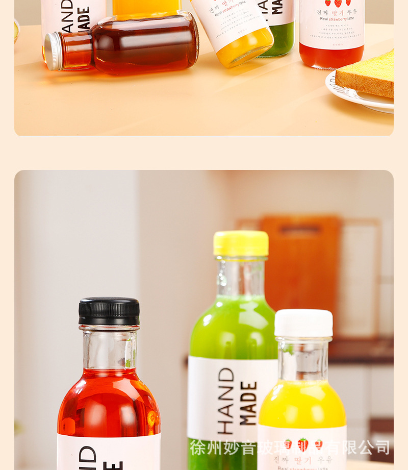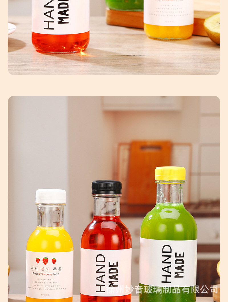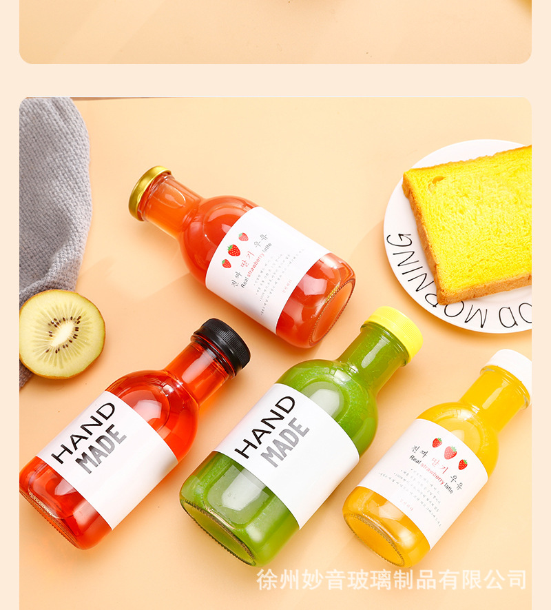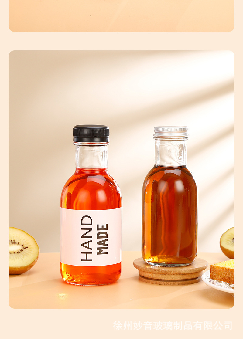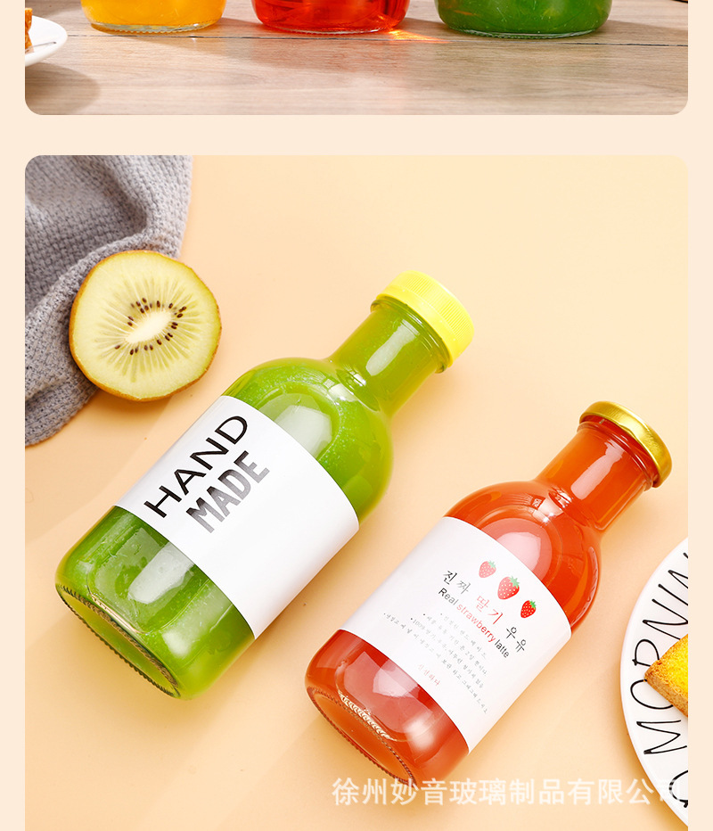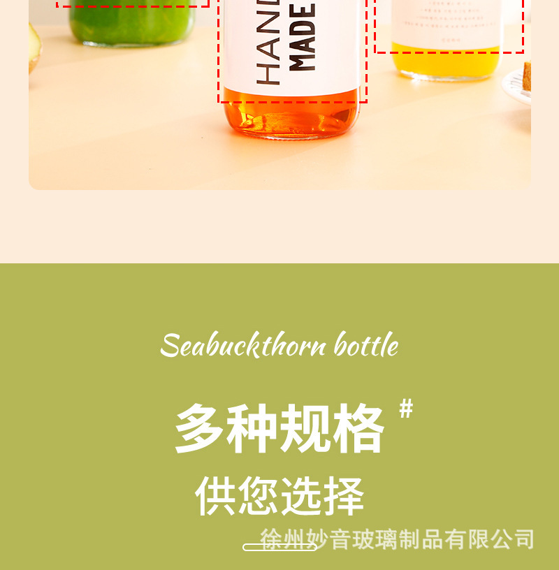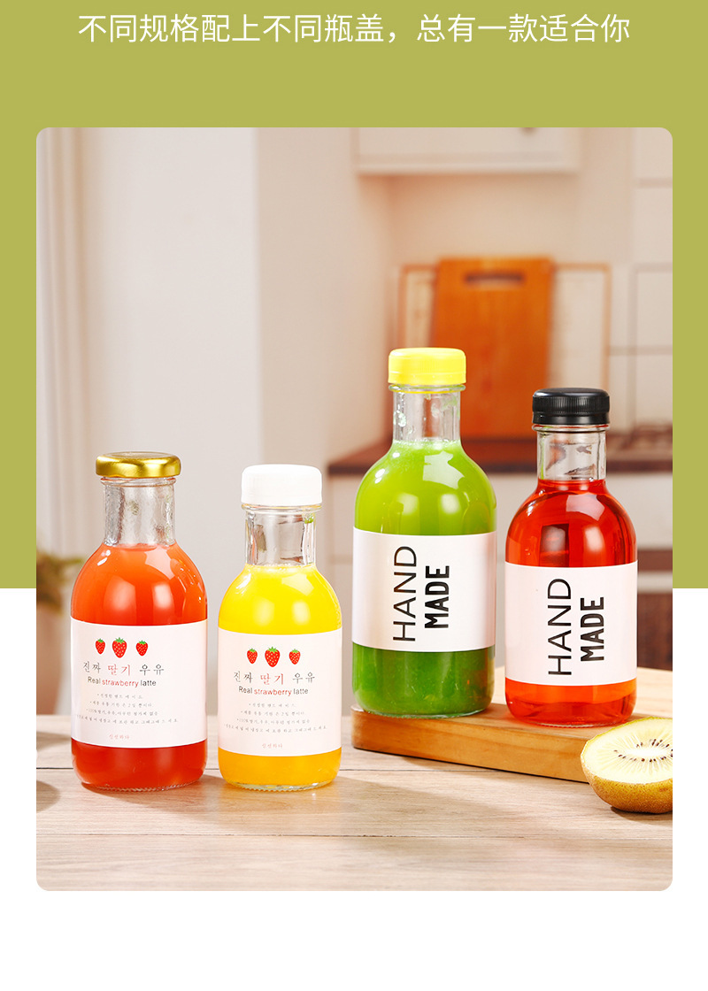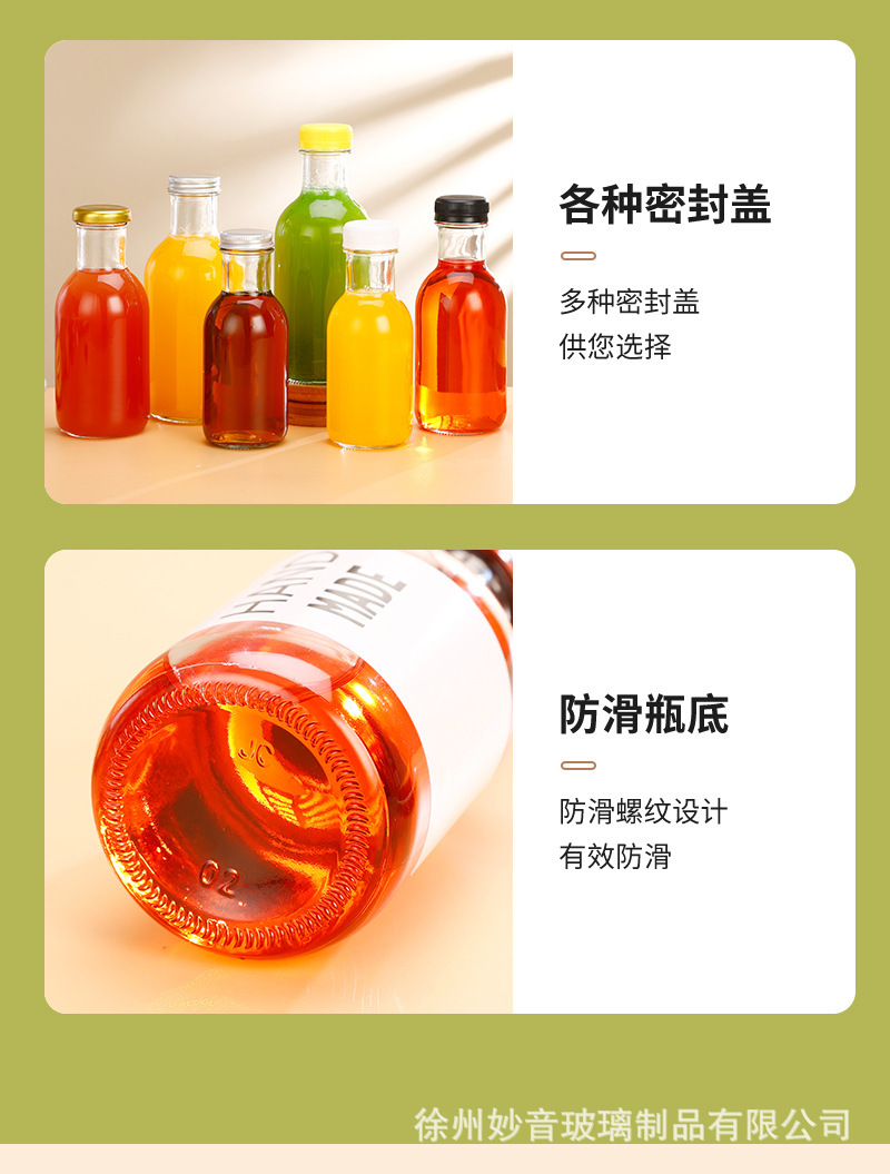 沙棘汁玻璃瓶透明玻璃饮料瓶果汁奶茶瓶沙拉酱番茄分装空瓶批发