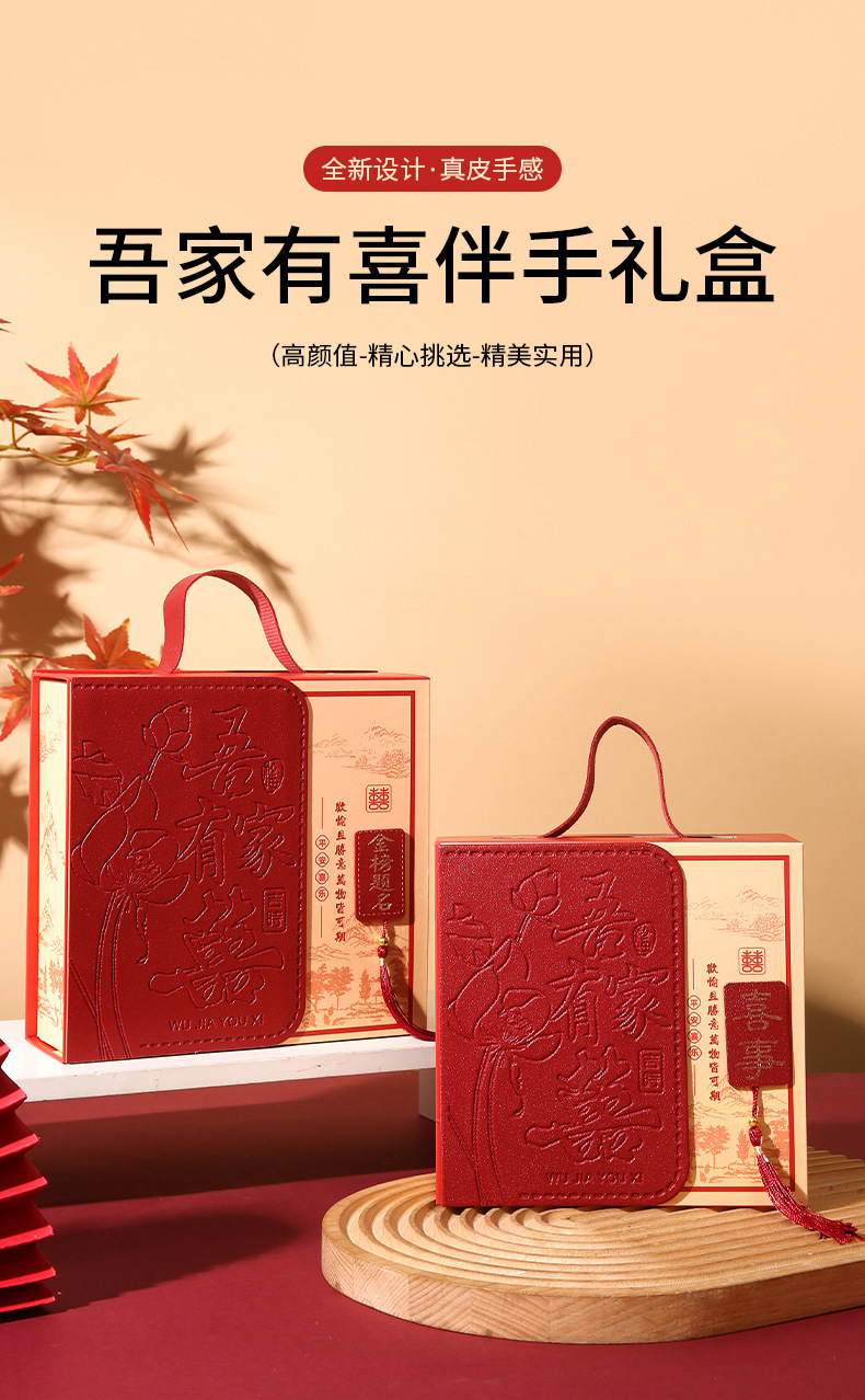 中式翻盖伴手礼盒皮质高端大气结婚喜糖盒乔迁过寿满月回礼空盒子