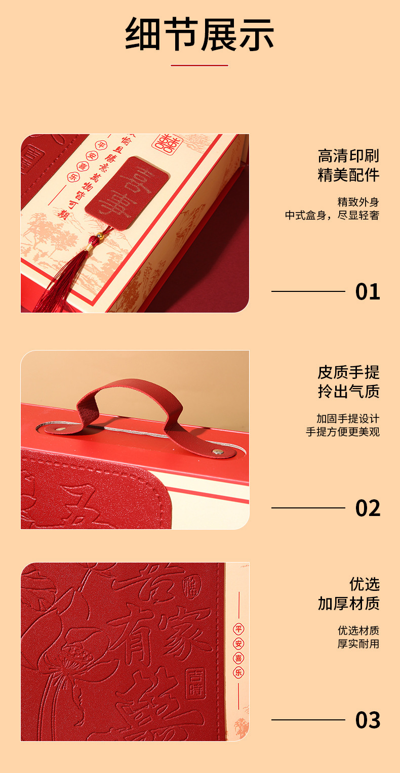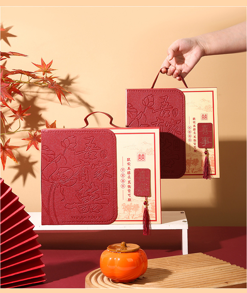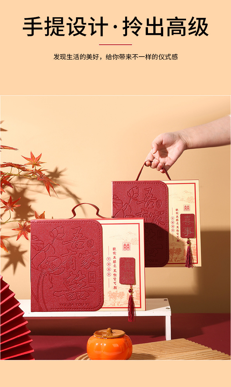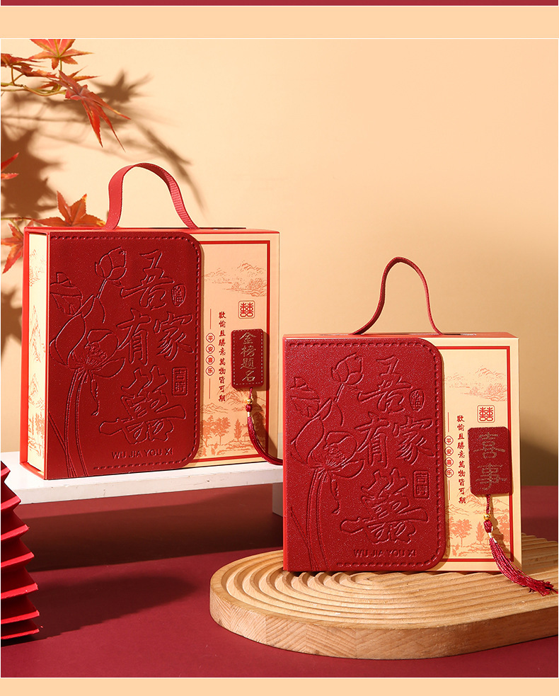 中国風の結婚祝いギフトボックス、革製の持ち運び可能な高級感のある結婚式のギフトボックス、結婚式のゲストへのお返しギフトボックス