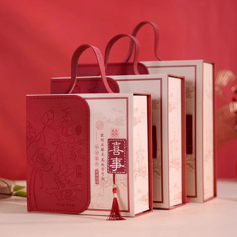 レトロな本の型の箱の古風な中国式の喜糖の箱の精巧な震える音のネットの赤い花嫁のお土産の卸売りは手提げます。
