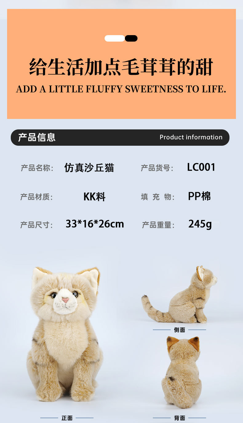 跨境亚马逊新款仿真动物玩偶礼物公仔可爱儿童摆件毛绒玩具沙丘猫