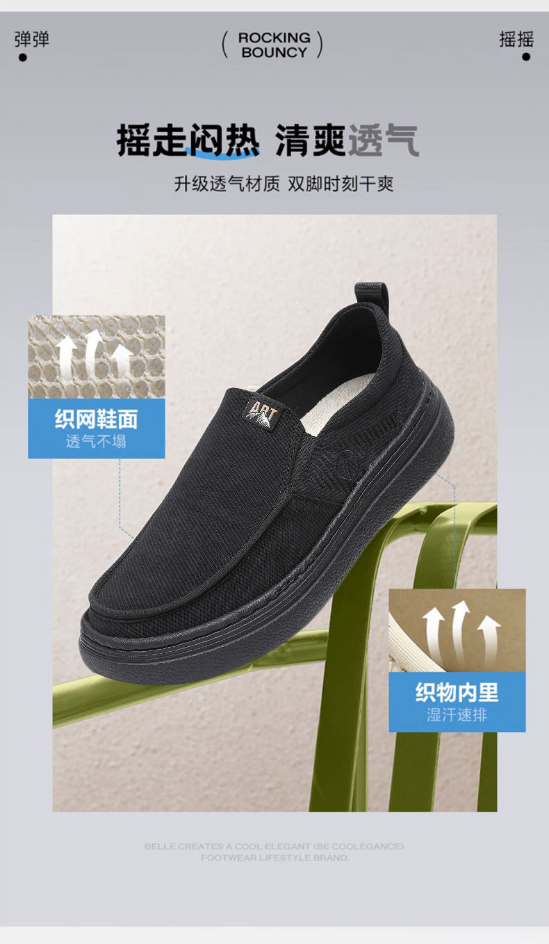老北京布鞋男鞋超轻厚底舒适中年男士休闲鞋一脚蹬宽脚圆头爸爸鞋