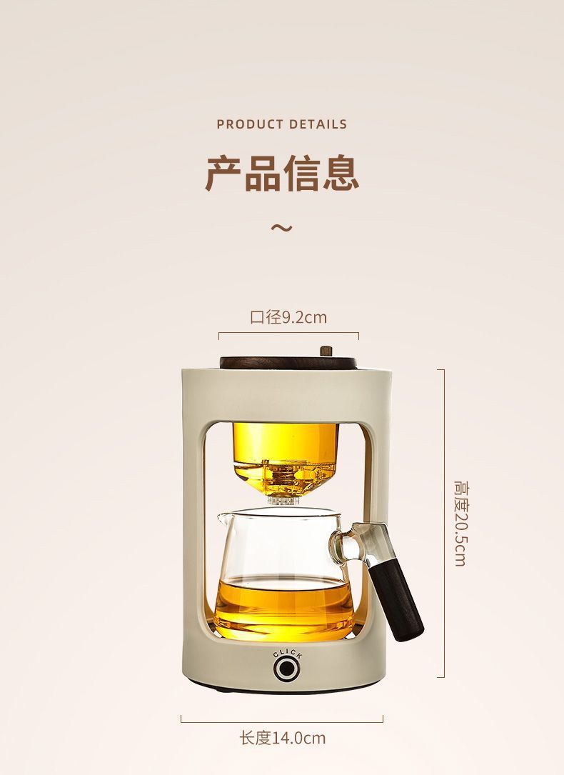 怠け者のための全自動ガラス製家庭用ティーポット、オフィス用ポールレス磁気吸引ワンクリックティーメーカー