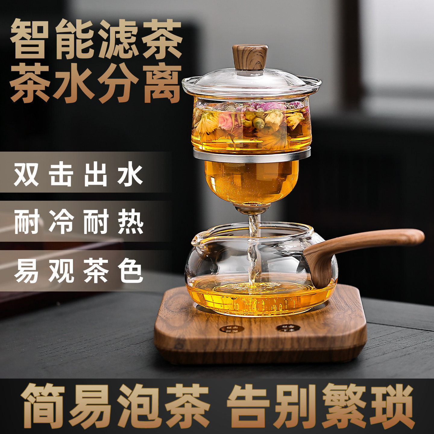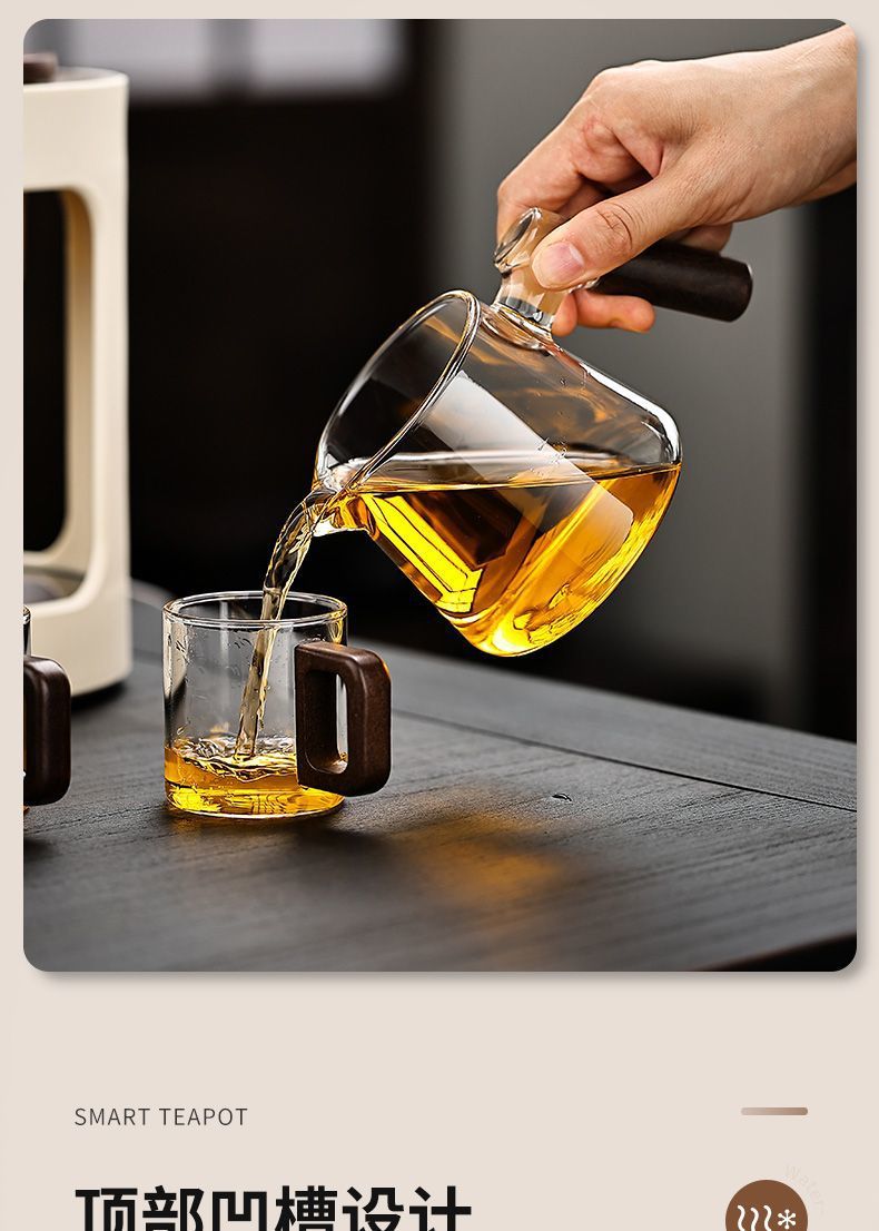聖系堂ガラス怠け者自動茶器オフィスパーマ防止胡桃木沖茶器茶水分離磁気吸引セット