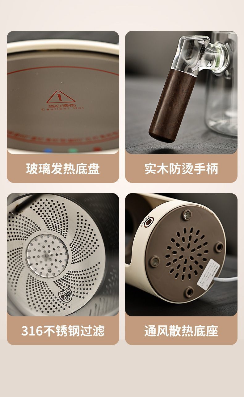 電気陶炉煮茶専用小型ガラス養生壺ベース知能電気茶炉日本式囲炉超薄ミニ