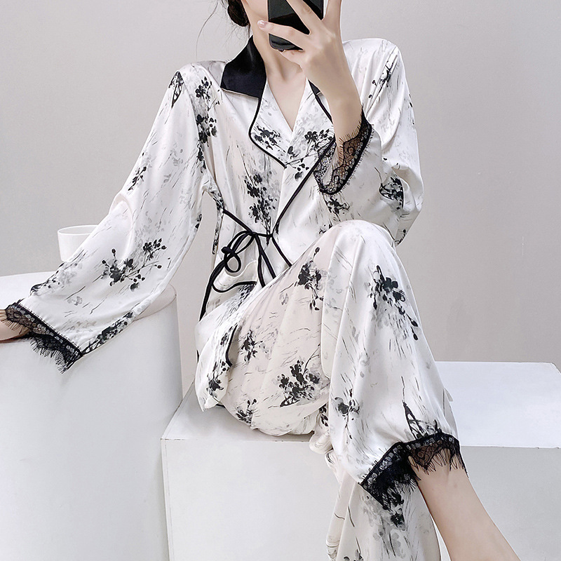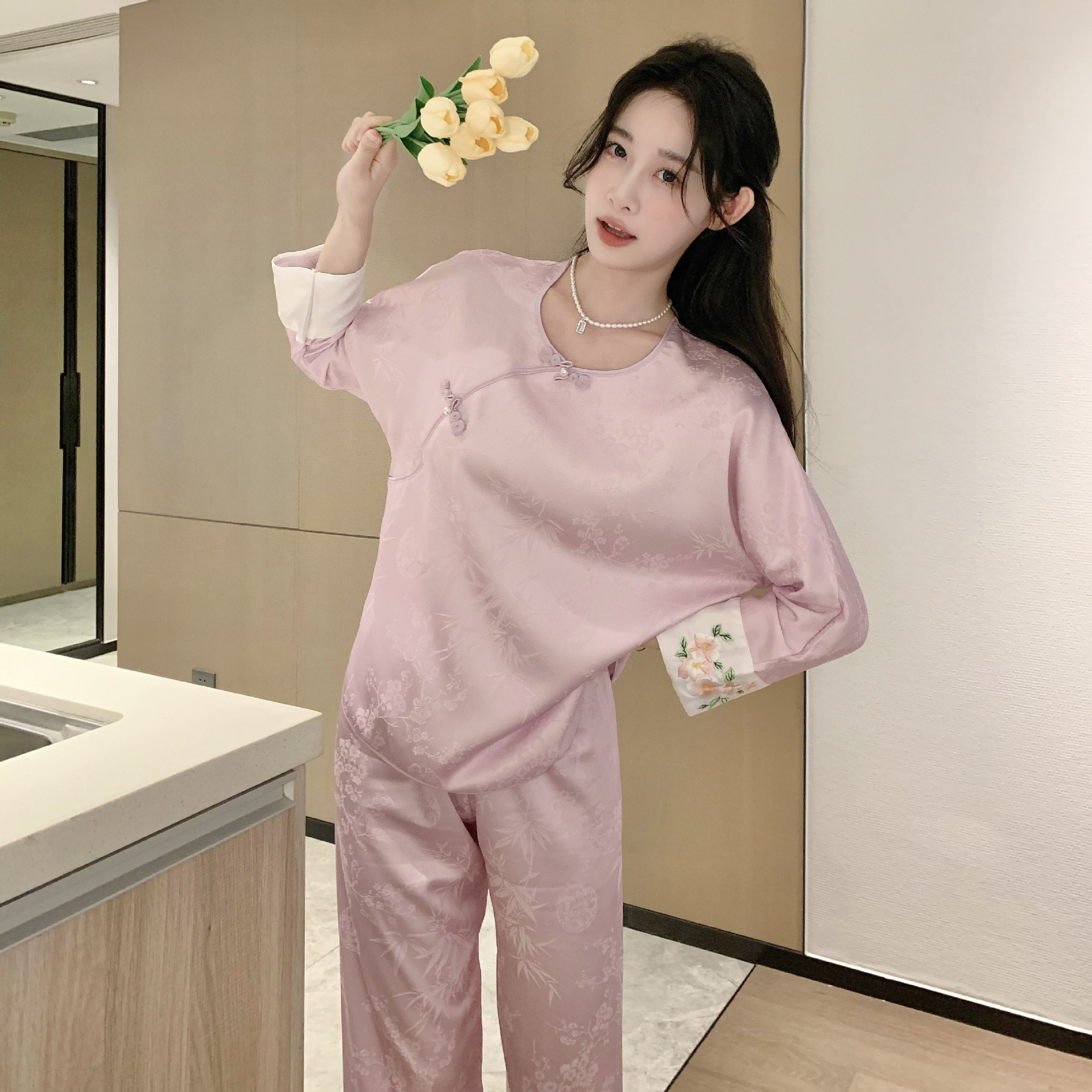 アイスパジャマ女性春秋タイプシルク長袖高級感ホームウェア秋冬新中国風ママセット