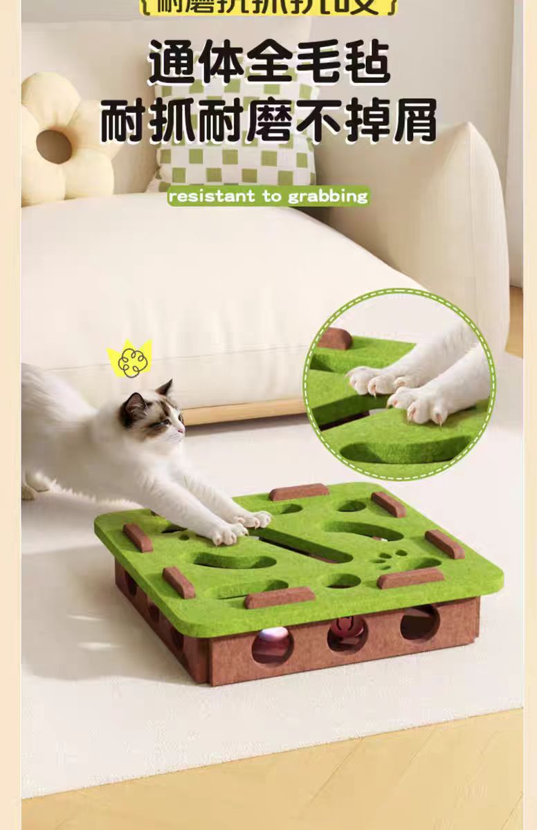猫玩具益智迷宫掏洞毛毡盒子猫咪玩具逗猫铃铛球耐咬磨牙宠物玩具
