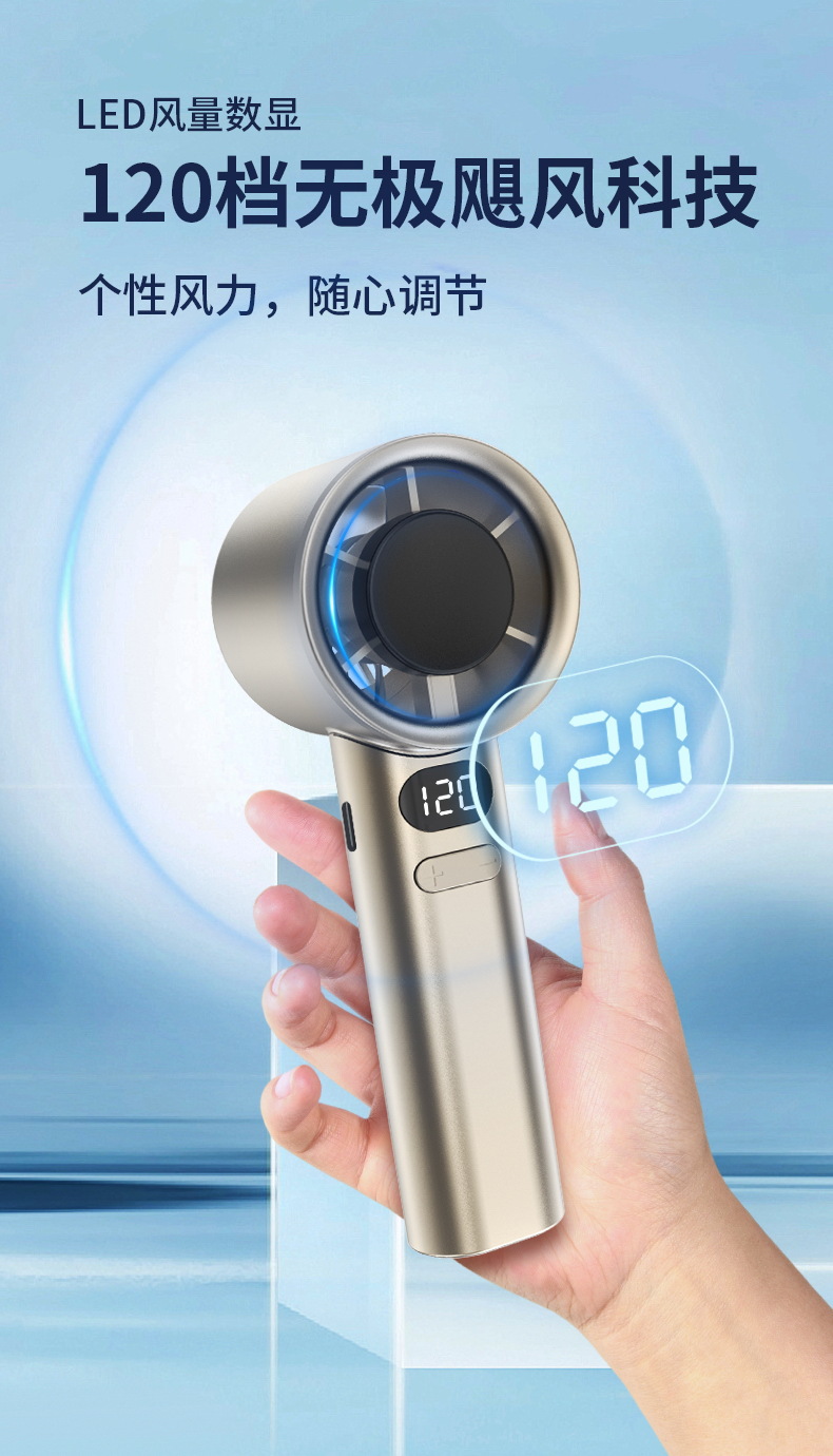 东南亚爆款M11迷你手持小风扇 usb充电数显120档涡轮高速暴力风扇