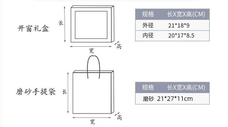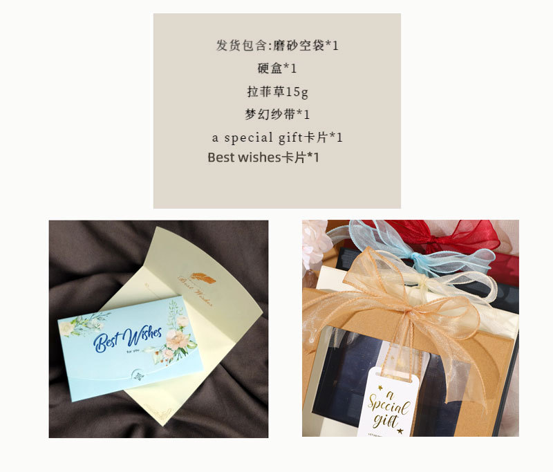 规格 裸盒(不带任何装饰),拉菲草(一盒)(不带盒子),透明手提袋(不带盒子),吊牌+丝带 (不带盒子)